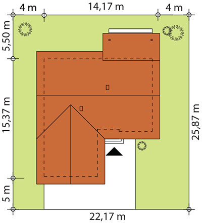 | Wysokość kalenicyMaksymalna wysokość budynku mierzona od poziomu terenu przy wejściu do najwyżej położonego punktu dachu. | 6.72 m |