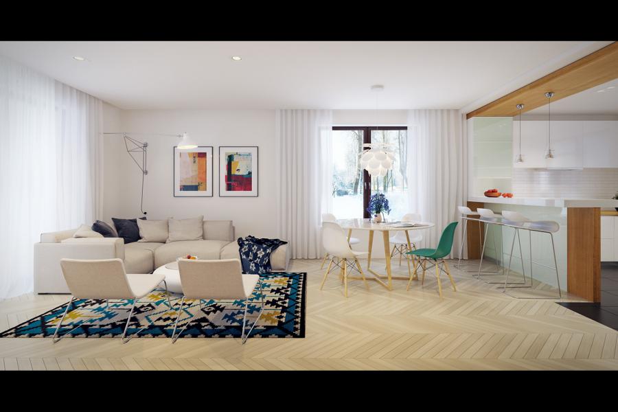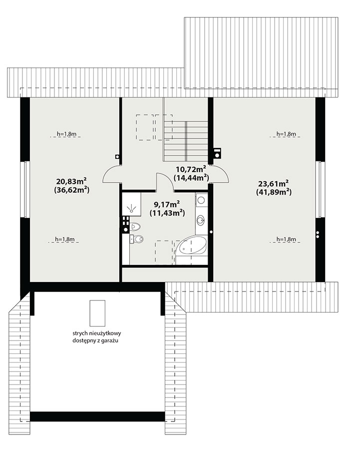 | Powierzchnia użytkowaDla domów parterowych: Suma powierzchni użytkowych wszystkich pomieszczeń bez garażu. Dla domów z poddaszem (dach spadzisty): Suma powierzchni użytkowych wszystkich pomieszczeń bez garażu i strychu. Na poddaszu, pod skosami dachu powierzchnię użytkową liczono wg zasady: - powyżej 2,2m wysokości pomieszczenia powierzchnia liczona w 100%, - pomiędzy 1,4m a 2,2m w 50%, - poniżej 1,4m powierzchnia nie jest brana pod uwagę. | 168.81 m² |
