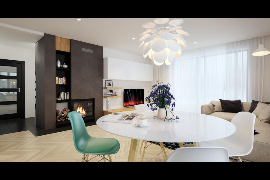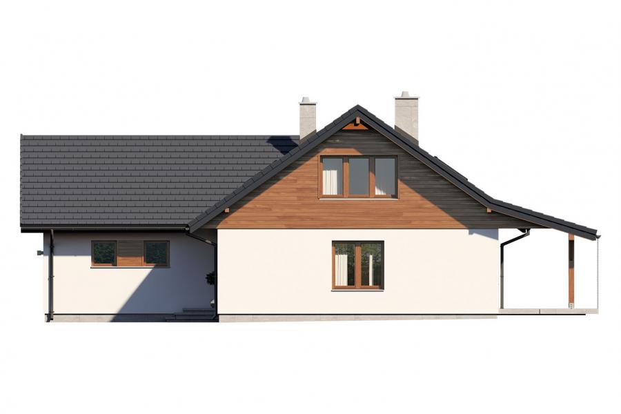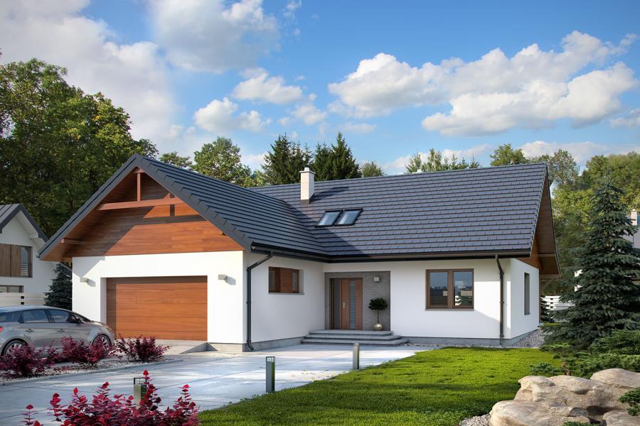 Abra 5 to jednorodzinny budynek mieszkalny, parterowy z użytkowym poddaszem, niepodpiwniczony z dwustanowiskowym garażem. Bogaty i funkcjonalny układ pomieszczeń gwarantuje optymalny komfort wieloosobowej rodzinie. Wyraźnie podzielona i ergonomicznie zaprojektowana przestrzeń mieszkalna składa się ze strefy dziennej, nocnej i gospodarczej. Najbardziej reprezentacyjna część domu, to przestronny salon, który otwiera się na duży, zadaszony taras oraz kuchnia ze spiżarnią połączona bezpośrednio z jadalnią. Oprócz części dziennej, przewidziano strefę intymną domu, która składa się na parterze z dwóch sypialni z łazienką oraz dwóch pokoi i łazienki na poddaszu. Dużą kotłownię oraz dwustanowiskowy garaż zlokalizowano w części gospodarczej domu. Wymiary kotłowni umożliwiają montaż kotła na każdy rodzaj paliwa. Geometria rzutu, harmonia bryły oraz prostota elewacji czynią ten dom łatwym w eksploatacji i utrzymaniu.