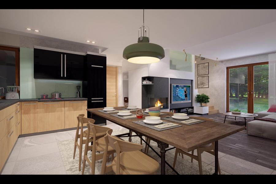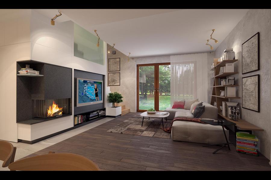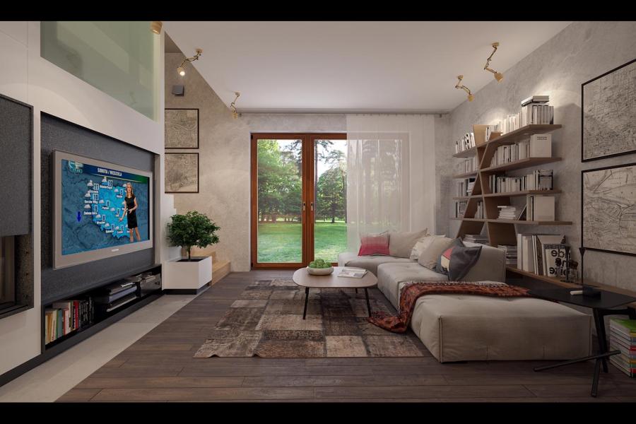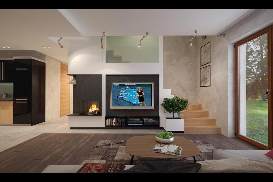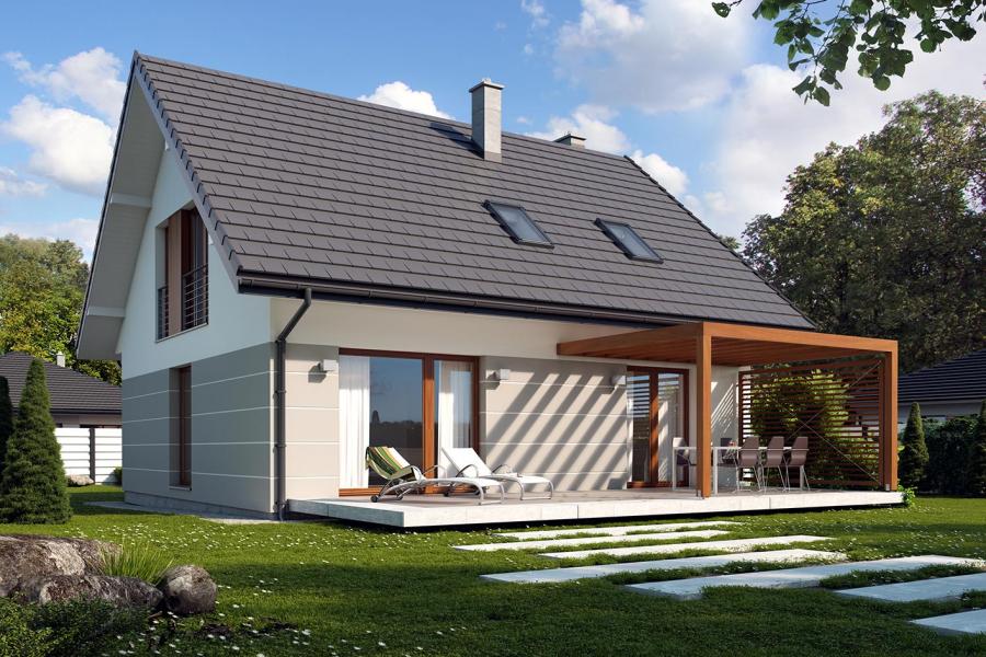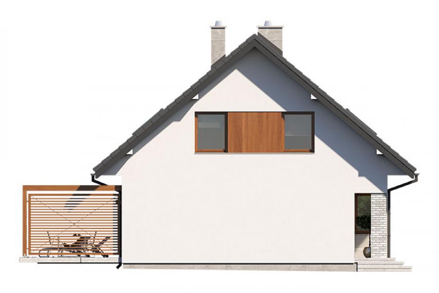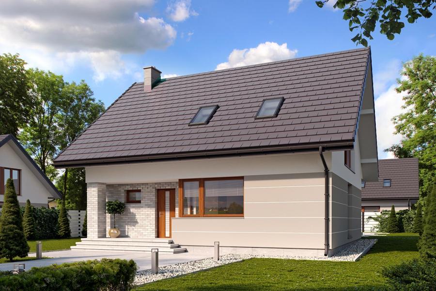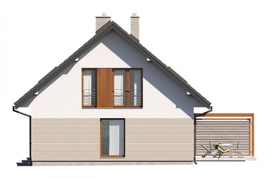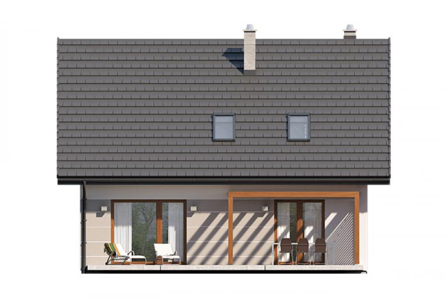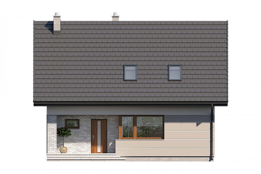 Prosty, ale zarazem interesujący dom o niewielkich gabarytach. Bardzo funkcjonalny układ pomieszczeń zapewnia optymalny komfort 4-osobowej rodzinie. Na parterze zaprojektowano kuchnię połączoną z jadalnią i salonem, kotłownię, łazienkę oraz dodatkowy pokój. Na poddaszu przewidziano 3 sypialnie oraz łazienkę. Elegancki styl tego budynku uzyskano poprzez połączenie klasycznej bryły domu jednorodzinnego z nowoczesnymi elewacjami i materiałami.