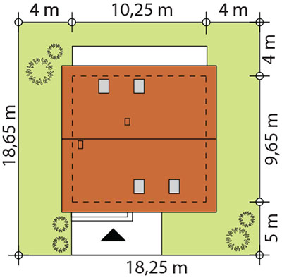 | Wysokość kalenicyMaksymalna wysokość budynku mierzona od poziomu terenu przy wejściu do najwyżej położonego punktu dachu. | 8.58 m |
