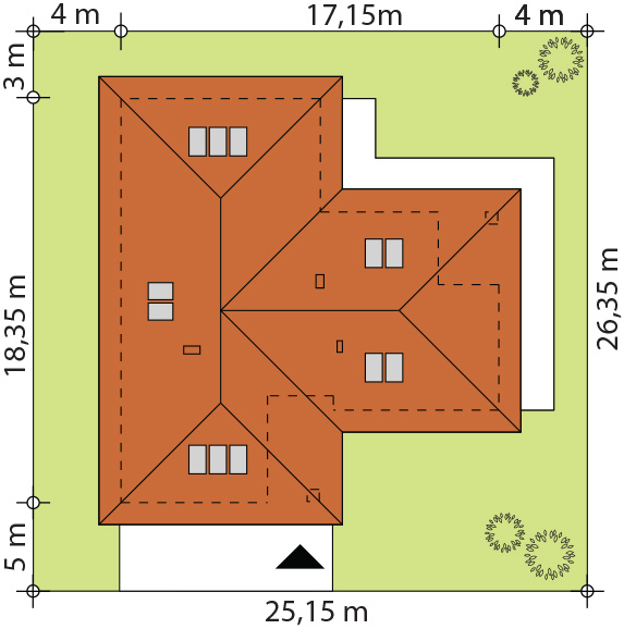 | Wysokość kalenicyMaksymalna wysokość budynku mierzona od poziomu terenu przy wejściu do najwyżej położonego punktu dachu. | 6.90 m |