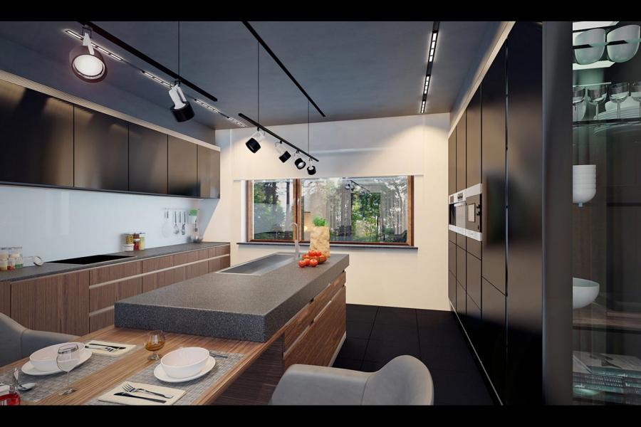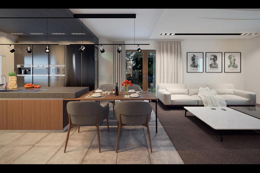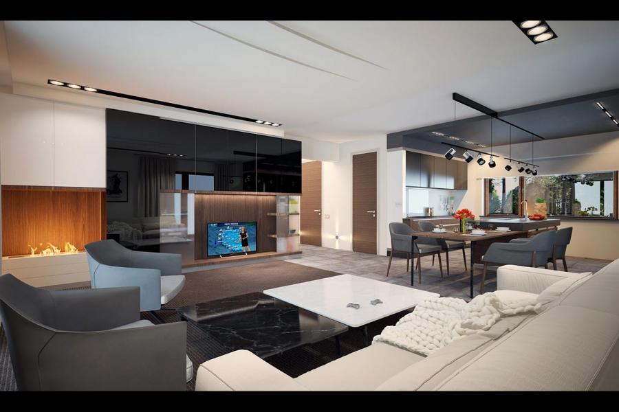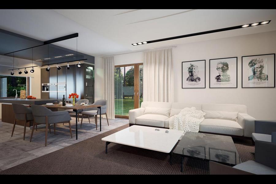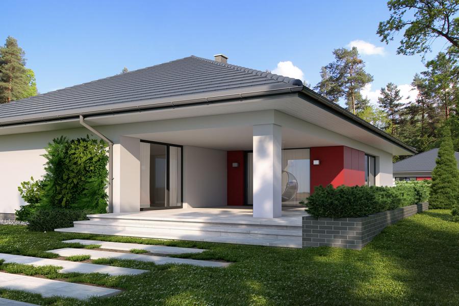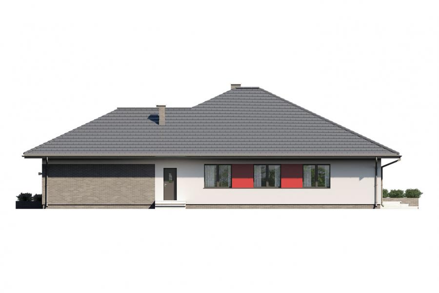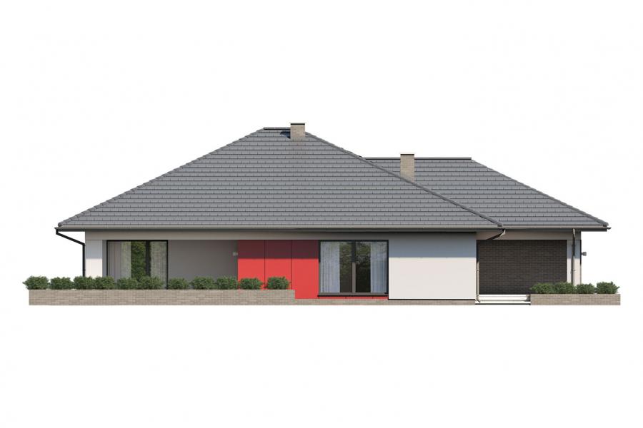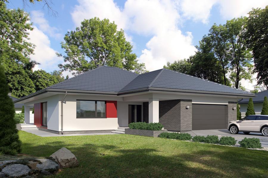 Asan 2 to parterowy dom jednorodzinny, niepodpiwniczony z dwustanowiskowym garażem. Swoim pełnym programem funkcjonalnym zapewnia komfort i wygodę nawet 5-osobowej rodzinie. Przestronna część dzienna to salon otwierający się na ogród poprzez ogromne przeszklenia, kuchnia połączona z jadalnią oraz spiżarnią i wc. Część nocna to 4 wygodne sypialnie i łazienka. Dodatkowo główna sypialnia posiada własną garderobę i łazienkę. W domu zaprojektowano dużą kotłownię dostępną z garażu, której parametry pozwalają na montaż kotła na każdy rodzaj paliwa, w tym na paliwo stałe. Część gospodarczą uzupełnia jeszcze pralnia i dwustanowiskowy garaż. Ten optymalny i ciekawy program funkcjonalny został ujęty w prostej bryle na rzucie litery T, przykrytej wielospadowym dachem. Atutem projektu jest jego prostota zarówno w układzie pomieszczeń, jak i w rozwiązaniach elewacji, gdzie elegancki, nowoczesny styl osiągnięto poprzez klasyczne, proste ale szlachetne materiały oraz delikatny, subtelny detal.