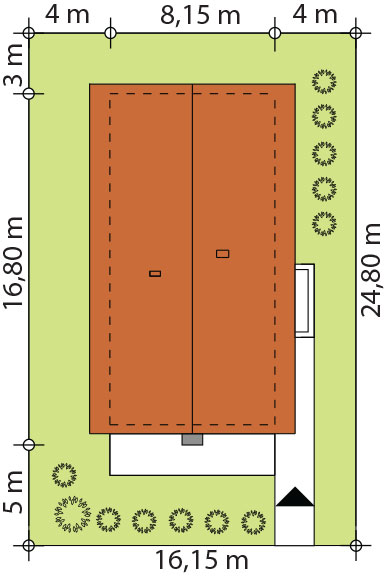 | Wysokość kalenicyMaksymalna wysokość budynku mierzona od poziomu terenu przy wejściu do najwyżej położonego punktu dachu. | 6.20 m |