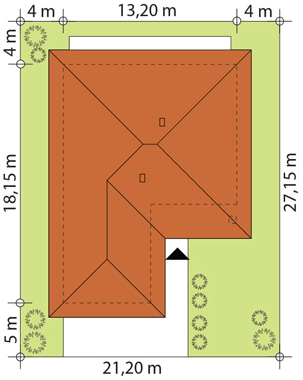 | Wysokość kalenicyMaksymalna wysokość budynku mierzona od poziomu terenu przy wejściu do najwyżej położonego punktu dachu. | 6.86 m |