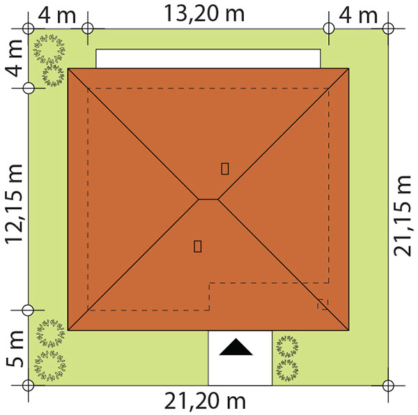 | Wysokość kalenicyMaksymalna wysokość budynku mierzona od poziomu terenu przy wejściu do najwyżej położonego punktu dachu. | 6.86 m |