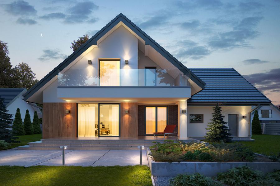 Dino 2 jest to dom z garażem dwustanowiskowym o klasycznym kształcie, przykryty dwuspadowym dachem. Wnętrze jest przestronne i pozwala na wiele sposobów aranżacji. Dom posiada duży, zadaszony taras dostępny z salonu i gabinetu. Kuchnię można pozostawić otwartą na jadalnię lub oddzielić. Nad garażem pozostawiono nieużytkowy strych (nie wliczony do powierzchni użytkowej) który można zaadoptować na dowolny cel. Sypialnie zlokalizowane są na poddaszu, największa z nich posada własną łazienkę. Wymiar kotłowni pozwala na montaż kotła na dowolne paliwo. Geometria rzutu, harmonia bryły oraz prostota nowoczesnych elewacji czynią ten dom nie tylko łatwym w eksploatacji i utrzymaniu ale również niezwykle eleganckim.