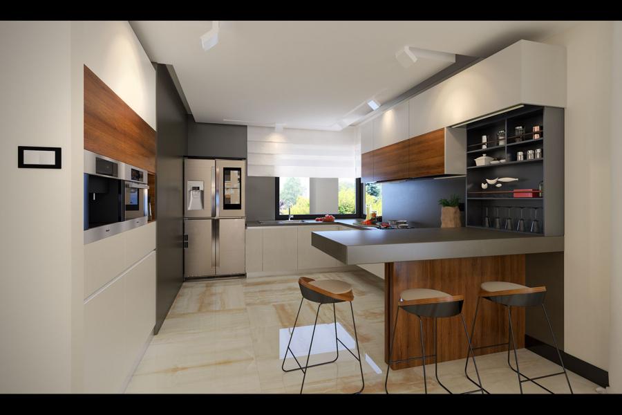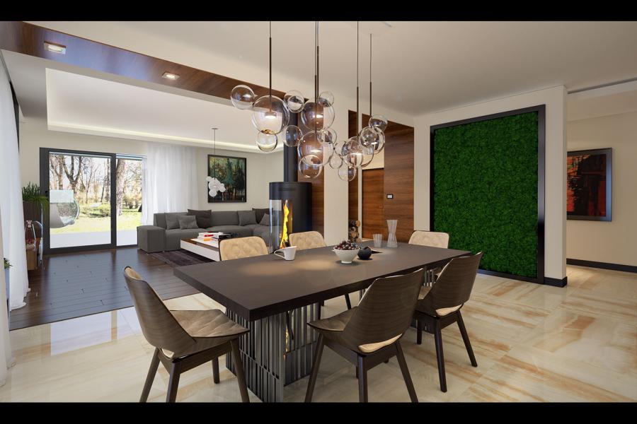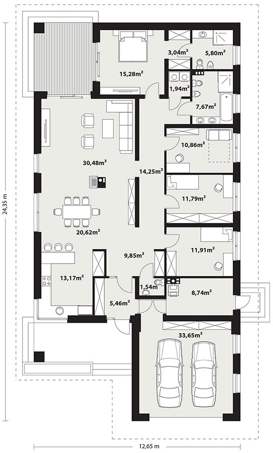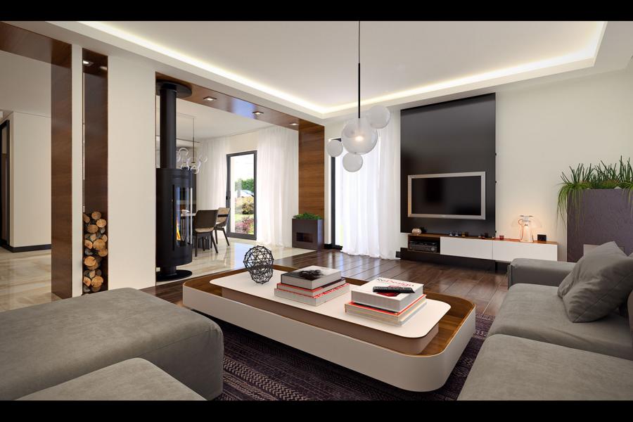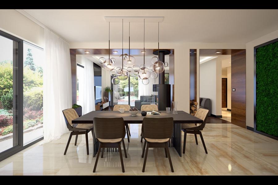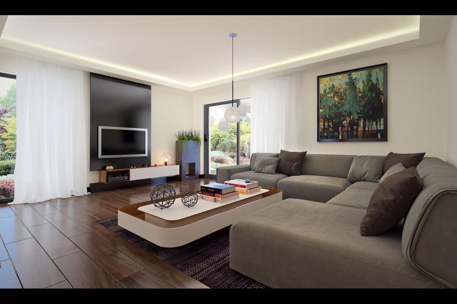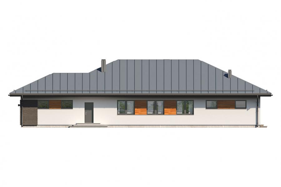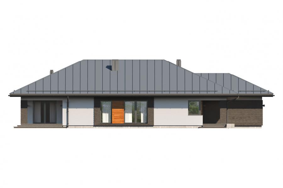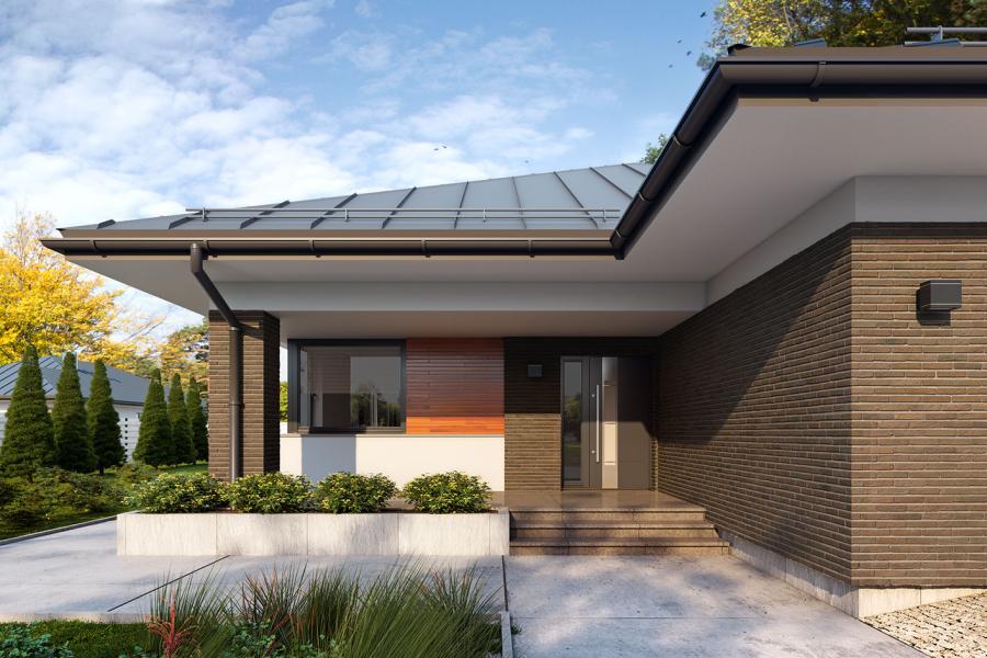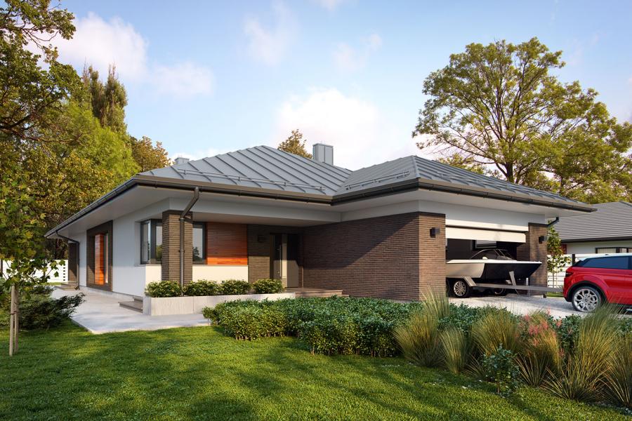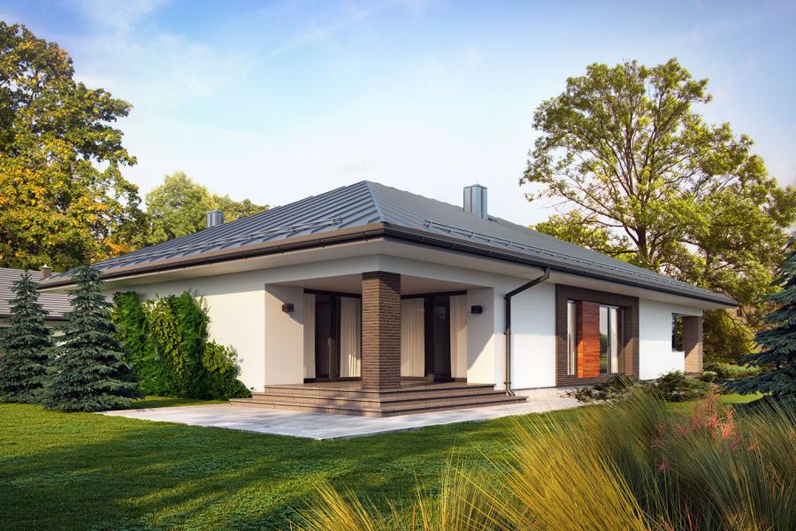 Egon 2 to projekt parterowego domu o bogatym programie użytkowym zamkniętym w zwartej bryle. Może być usytuowany na działkach o minimalnej szerokości 20,65. Wnętrze pozwala na wiele sposobów aranżacji. Przestrzeń dzienną można zostawić otwartą lub wydzielić kuchnię i jadalnię ścianami.Przyjęty układ strefowy zapewnia prywatność w części nocnej, jednocześnie sprzyjając integracji użytkowników w otwartej części dziennej. Dom posiada dwa zadaszone tarasy: wejściowy i ogrodowy. Atutami funkcjonalnymi domu są: dodatkowa łazienka i garderoba w głównej sypialni oraz pralnia. Egon to elegancki, klasyczny dom ujęty w prostej bryle, który swoim program użytkowym zapewni komfort wymagającym użytkownikom.