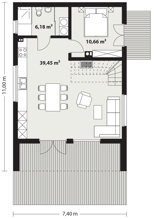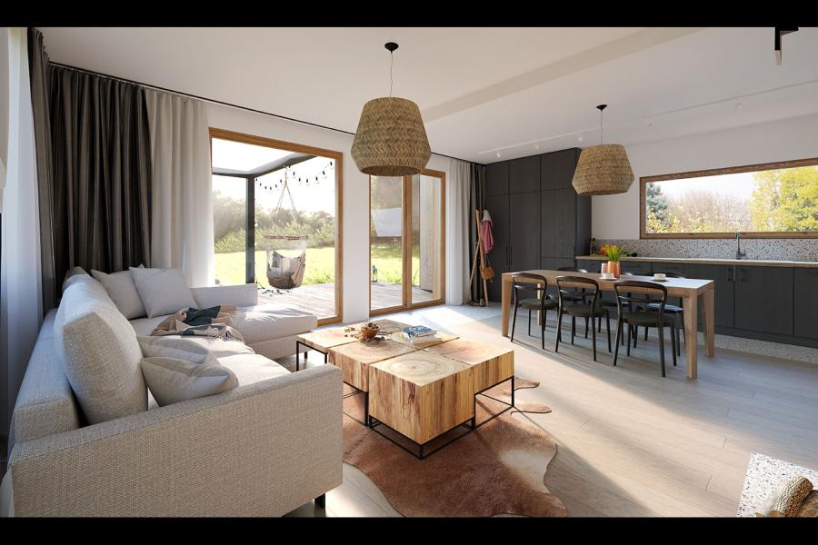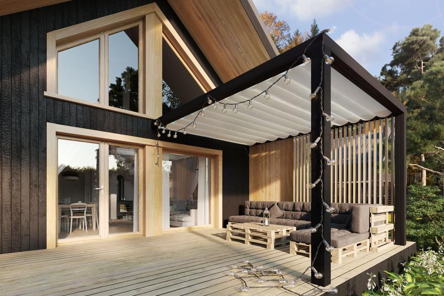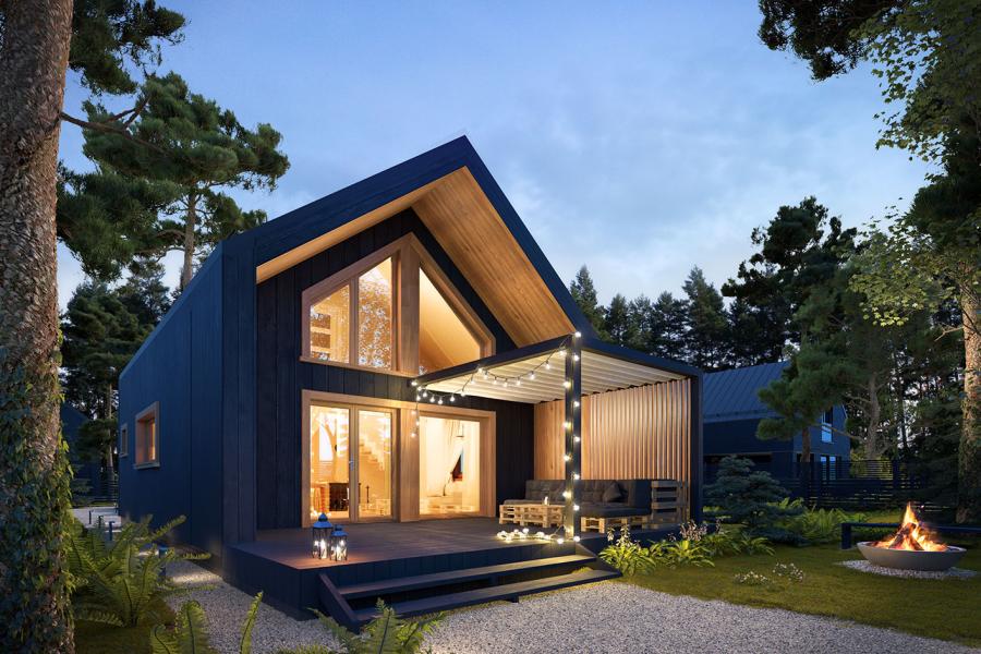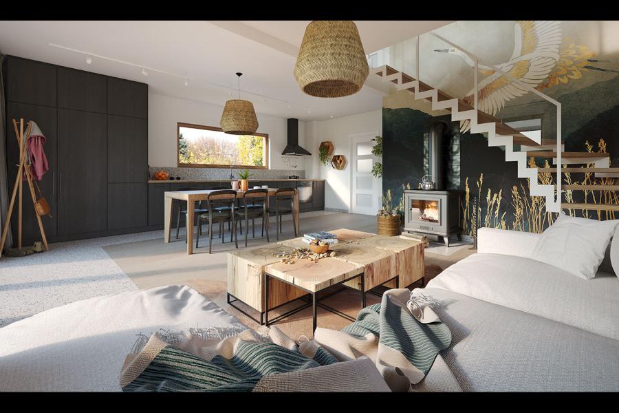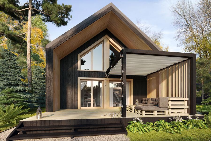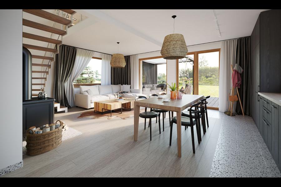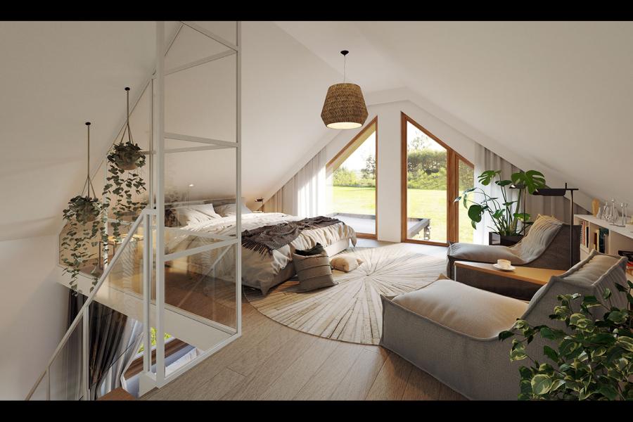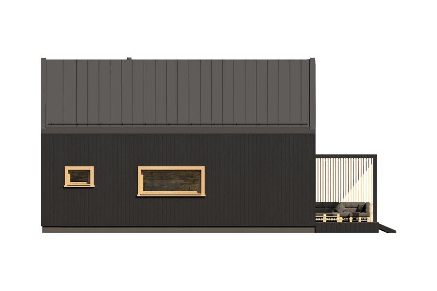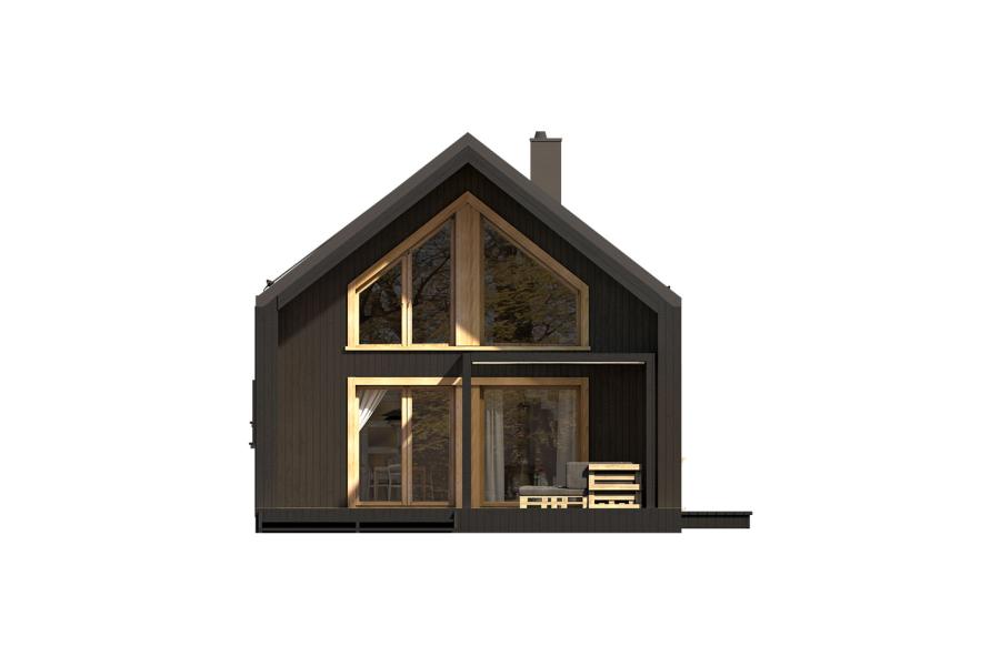Erna 2 drewniana do niewielki dom jednorodzinny lub letniskowy. Posiada trzy sypialnie oraz otwartą część dzienną. Dzięki powierzchni zabudowy 69,5 m2, może być budowany na zgłoszenie. Jest to "nowoczesna stodoła" z przeszkleniami w ścianie szczytowej. Wejście do domu jest przez taras co pozwala sytuować dom na działkach z wejściem od południa. Standardowo dom wyposażony jest w pompę ciepła oraz kominek.