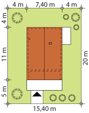 | Wysokość kalenicyMaksymalna wysokość budynku mierzona od poziomu terenu przy wejściu do najwyżej położonego punktu dachu. | 7.15 m |