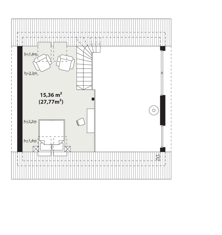 | Powierzchnia użytkowaDla domów parterowych: Suma powierzchni użytkowych wszystkich pomieszczeń bez garażu. Dla domów z poddaszem (dach spadzisty): Suma powierzchni użytkowych wszystkich pomieszczeń bez garażu i strychu. Na poddaszu, pod skosami dachu powierzchnię użytkową liczono wg zasady: - powyżej 2,2m wysokości pomieszczenia powierzchnia liczona w 100%, - pomiędzy 1,4m a 2,2m w 50%, - poniżej 1,4m powierzchnia nie jest brana pod uwagę. | 68.33 m² |