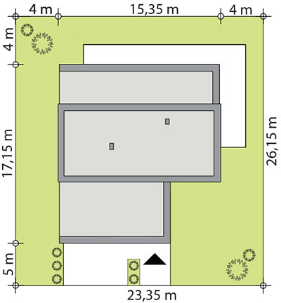 | Wysokość kalenicyMaksymalna wysokość budynku mierzona od poziomu terenu przy wejściu do najwyżej położonego punktu dachu. | 4.49 m |