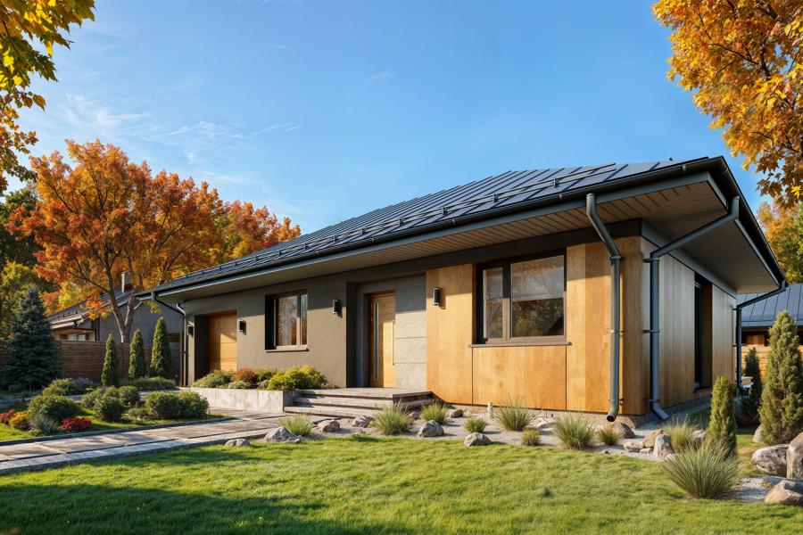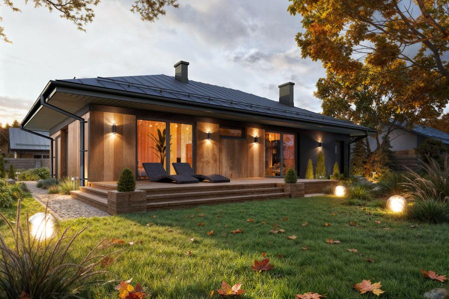 - Ekonomiczna bryła: Prosta konstrukcja na rzucie prostokąta z dachem kopertowym, tania w budowie i eksploatacji.