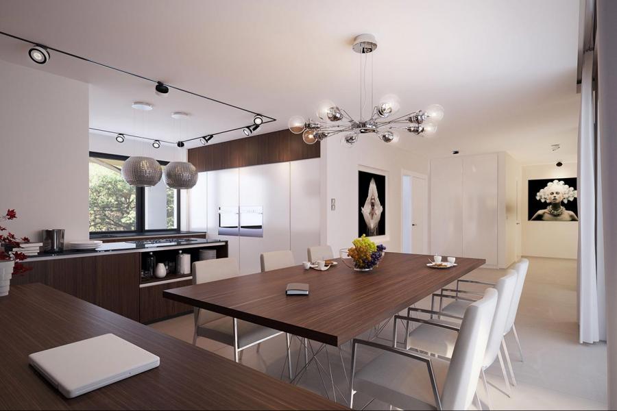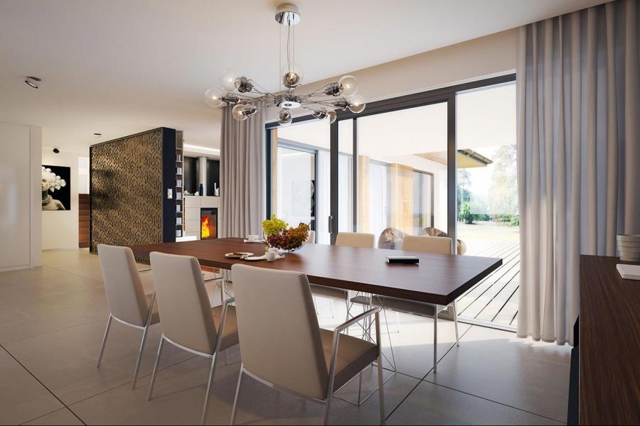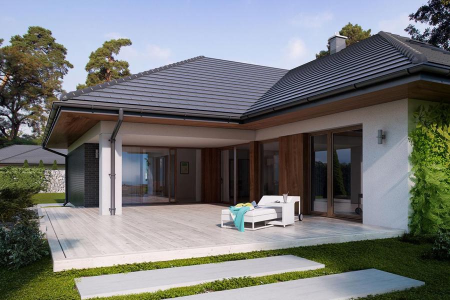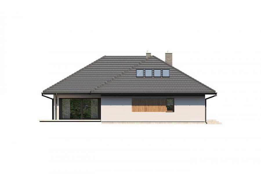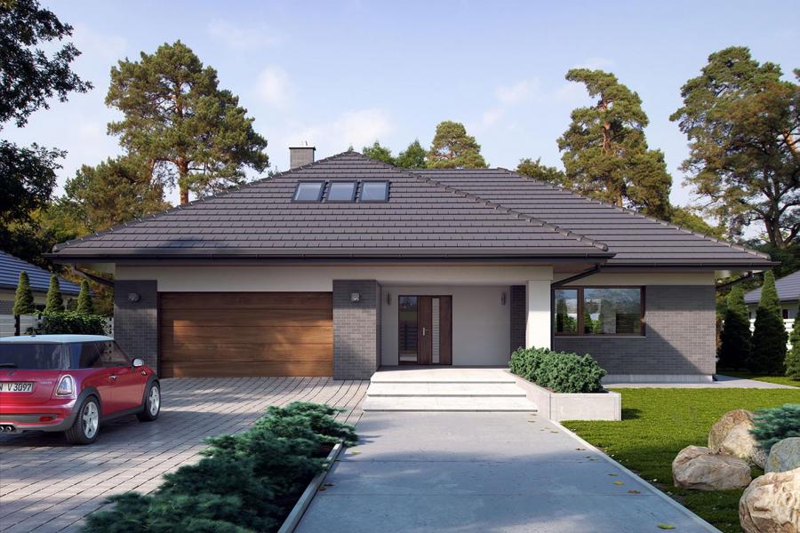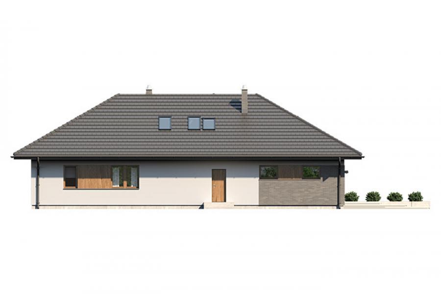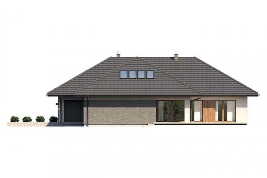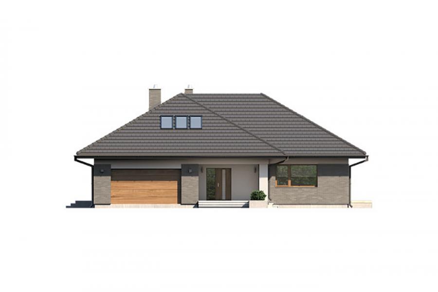 Goran 2 to jednorodzinny budynek mieszkalny, parterowy z użytkowym poddaszem, niepodpiwniczony z dwustanowiskowym garażem. Bardzo bogaty i funkcjonany układ pomieszczeń gwarantuje optymalny komfort wieloosobowej rodzinie. Wyraźnie podzielona i ergonomicznie zaprojektowana przestrzeń mieszkalna składa się ze strefy dziennej, nocnej i gospodarczej. Najbardziej reprezentacyjna część domu, to przestronny salon, który otwiera się na duży, zadaszony taras oraz kuchnia ze spiżarnią połączona bezpośrednio z dużą jadalnią. Oprócz części dziennej, przewidziano strefę intymną domu, która składa się na parterze z dwóch sypialni i łazienki oraz na poddaszu z trzech sypialni, łazienki i garderoby. Dużą kotłownię oraz garaż zlokalizowano w części gospodarczej domu. Wymiary kotłowni umożliwiają montaż kotła na każdy rodzaj paliwa. Geometria rzutu, harmonia bryły oraz prostota elewacji czynią ten dom nie tylko łatwym w eksploatacji i utrzymaniu, ale również niezwykle eleganckim.