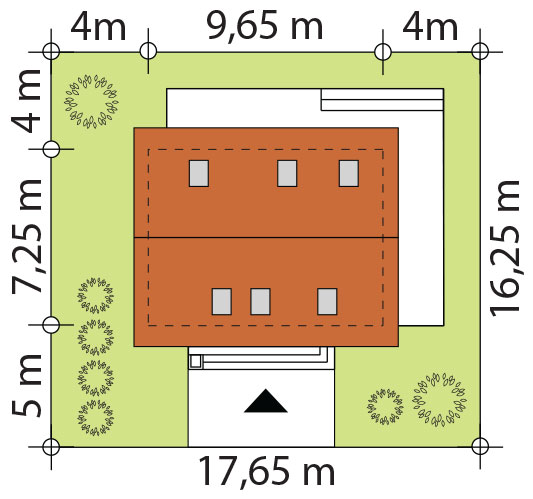 | Wysokość kalenicyMaksymalna wysokość budynku mierzona od poziomu terenu przy wejściu do najwyżej położonego punktu dachu. | 7.60 m |