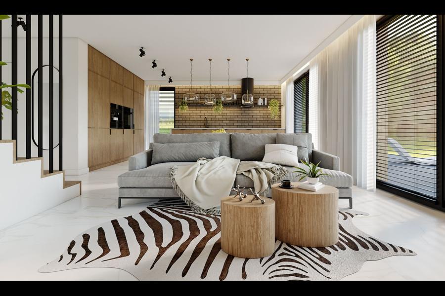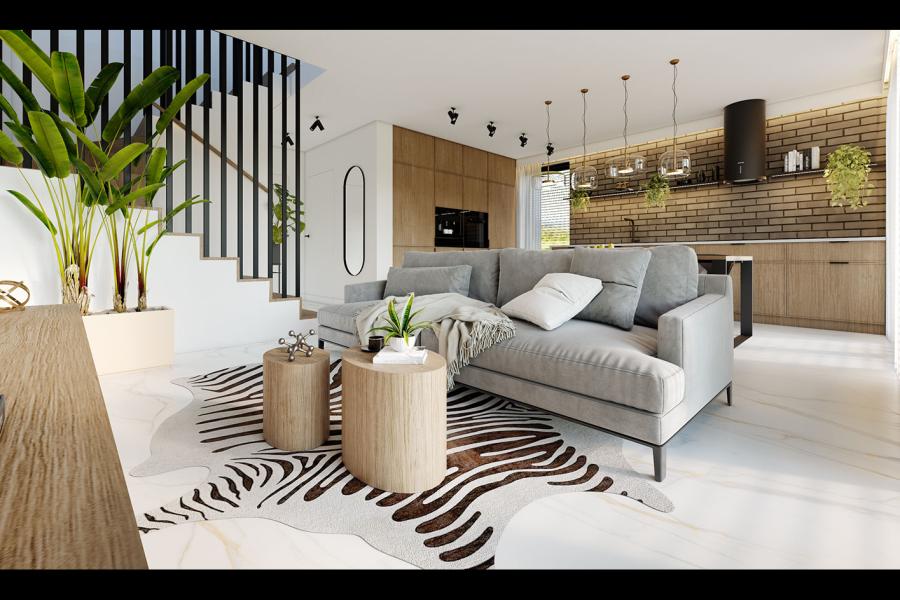 Wnętrze domu Helen udowadnia, że na niespełna 90 m² powierzchni użytkowej można stworzyć przestrzeń w pełni komfortową dla 4-osobowej rodziny.