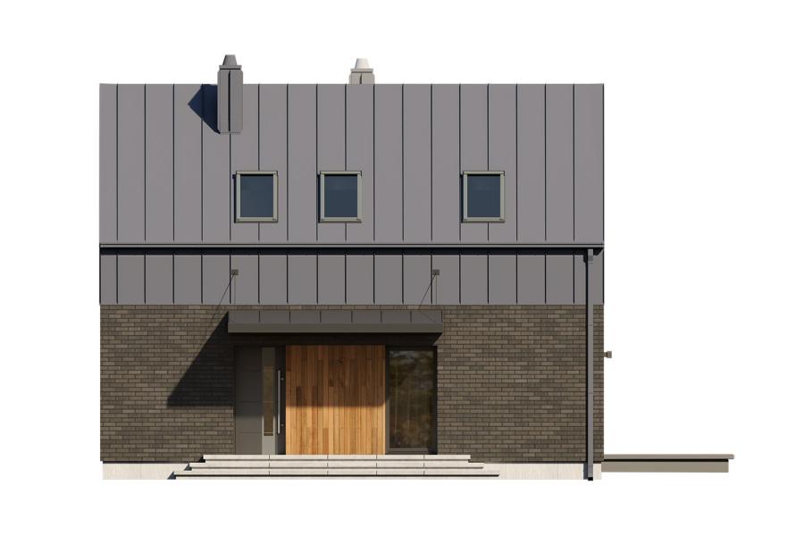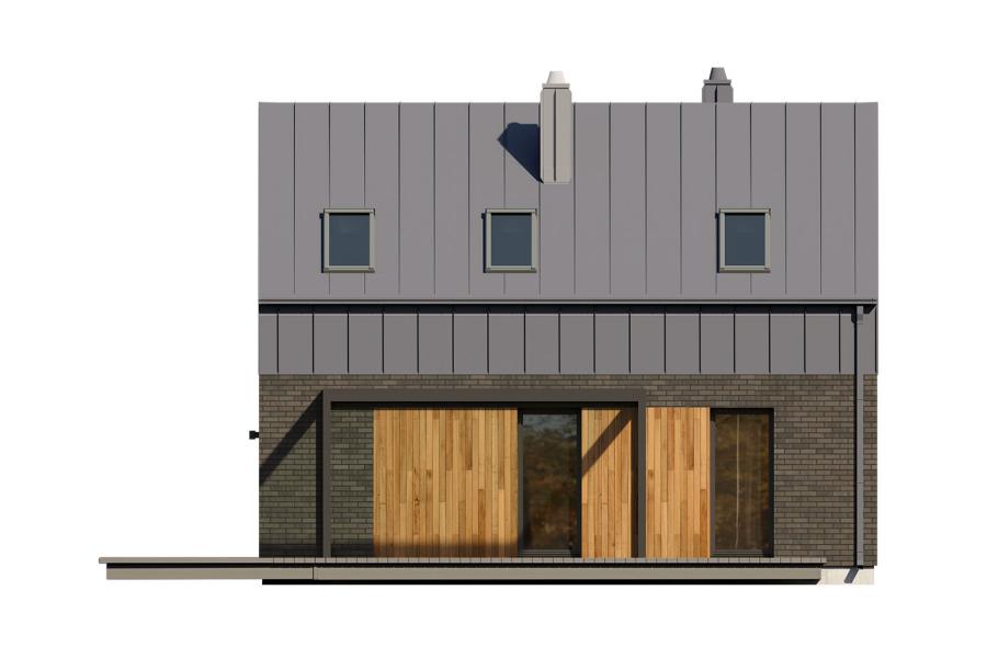 - Design premium: Blacha na rąbek i duże przeszklenia nadają domowi luksusowy, nowoczesny wygląd.