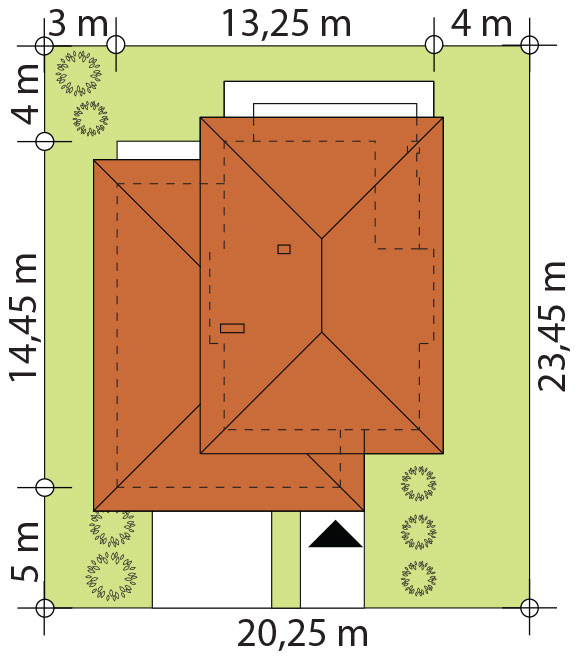 | Wysokość kalenicyMaksymalna wysokość budynku mierzona od poziomu terenu przy wejściu do najwyżej położonego punktu dachu. | 8.44 m |