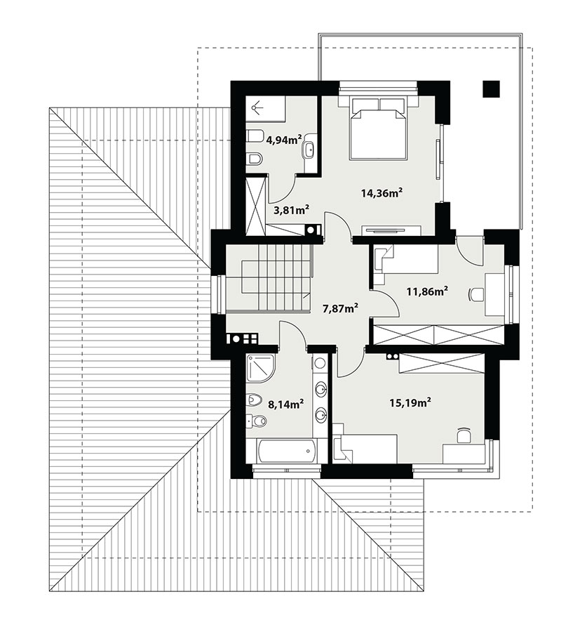 | Powierzchnia użytkowaDla domów parterowych: Suma powierzchni użytkowych wszystkich pomieszczeń bez garażu. Dla domów z poddaszem (dach spadzisty): Suma powierzchni użytkowych wszystkich pomieszczeń bez garażu i strychu. Na poddaszu, pod skosami dachu powierzchnię użytkową liczono wg zasady: - powyżej 2,2m wysokości pomieszczenia powierzchnia liczona w 100%, - pomiędzy 1,4m a 2,2m w 50%, - poniżej 1,4m powierzchnia nie jest brana pod uwagę. | 156.82 m² |