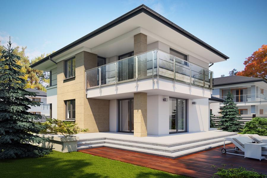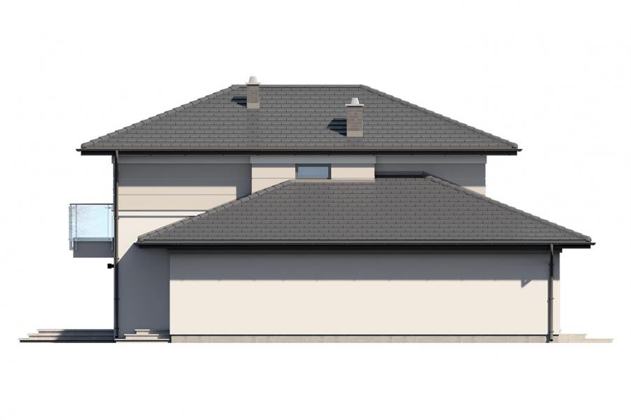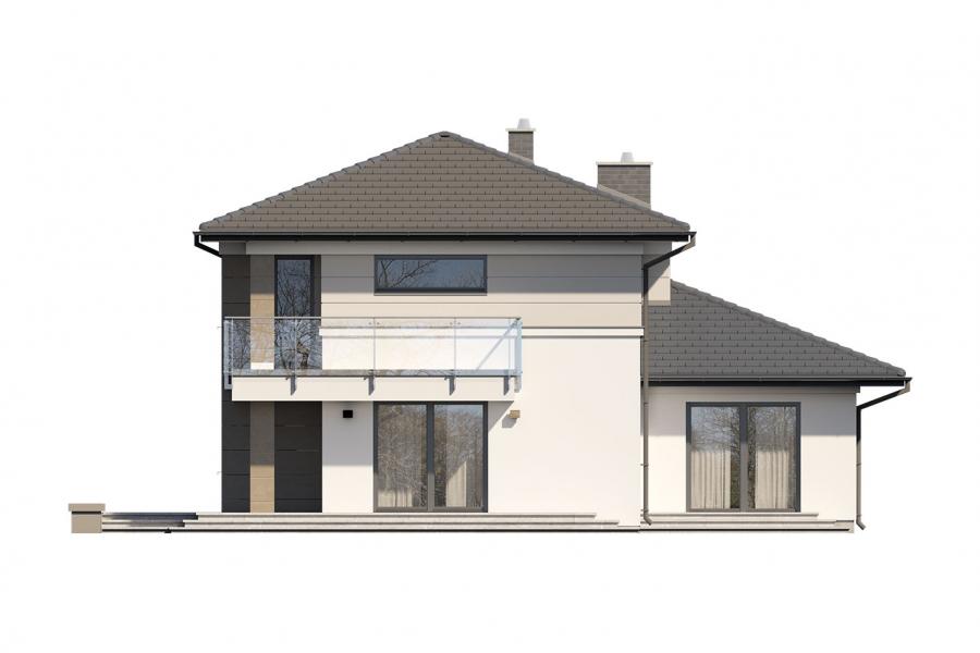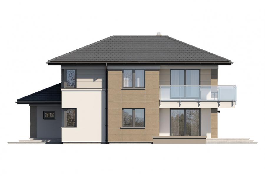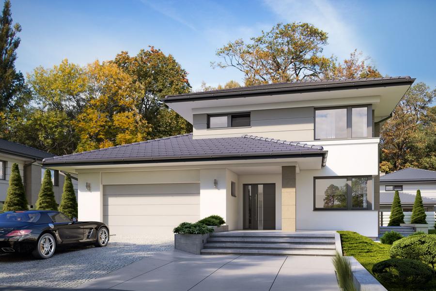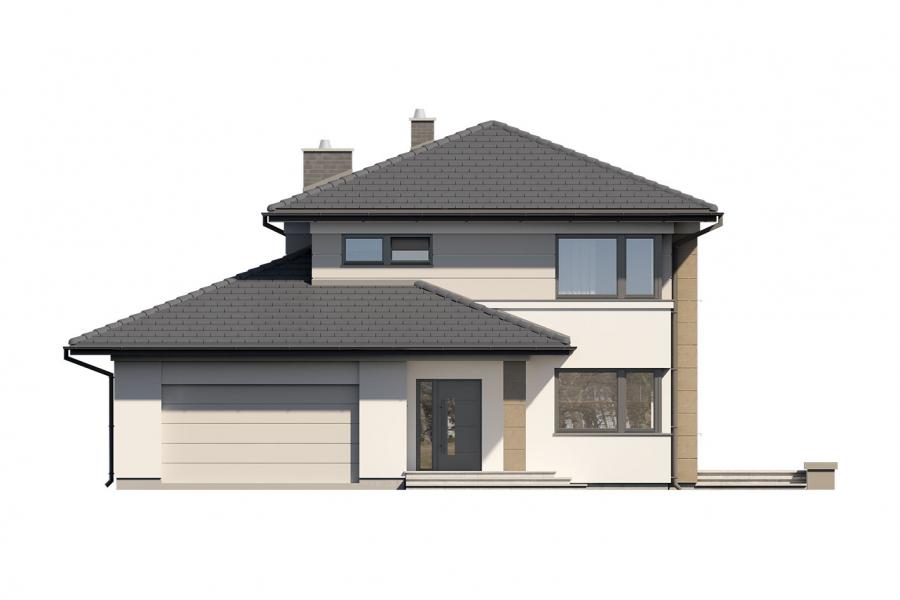 Karat 5, to projekt eleganckiego, nowoczesnego domu piętrowego przeznaczonego dla 4-osobowej rodziny. Jest to typowo miejska rezydencja o reprezentacyjnym wyglądzie i optymalnej powierzchni użytkowej. Posiada bogaty program fukncjonalny, rozłożony na dwóch pełnych kondygnacyjnych, który zapewni komfort wymagającym inwestorom. Parter zaprojektowano jako otwartą przestrzeń dzienną, złożoną z połączonego salonu, jadalni i kuchni. Przewidziano tam również dodatkowy pokój, który można wykorzystać na gabinet lub sypialnię. Na parterze znajduje się również duża kotłownia, na każdy rodzaj paliwa oraz dwustanowiskowy garaż. Na piętrze zaprojektowano 3 sypialnie i łazienkę. Główna sypialnia ma zapewnioną własną garderobę oraz łazienkę. Taką dodatkową przestrzeń można według potrzeb przerobić np. na kącik do pracy. Karat 5 zachwyca ciekawą, ponadczasową, klasyczną bryłą ujętą we współczesny elegancki wizerunek. Rezydencja ta stanowi doskonałą propozycję dla inwestorów poszukujących komfortowego domu w estetycznym wydaniu.