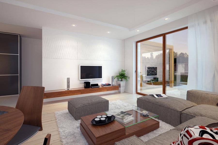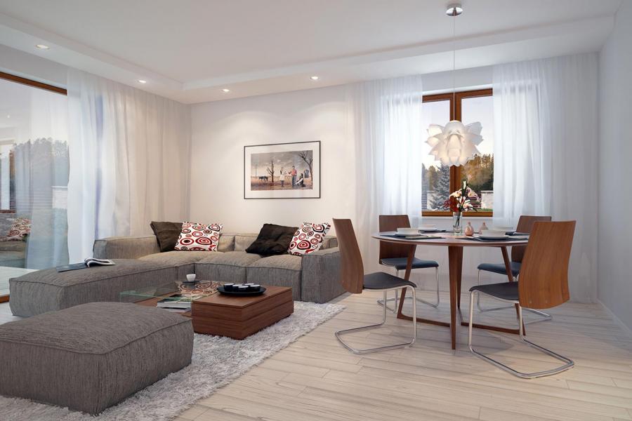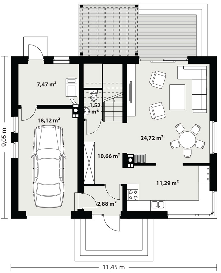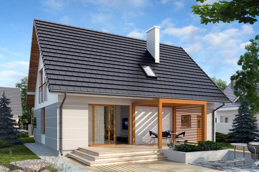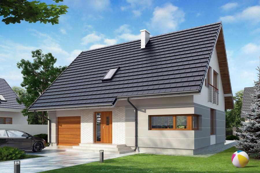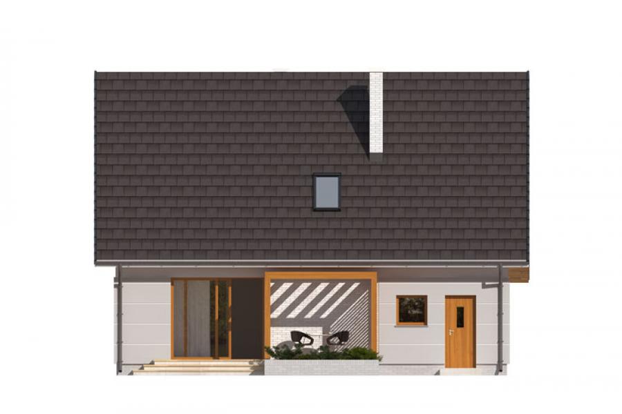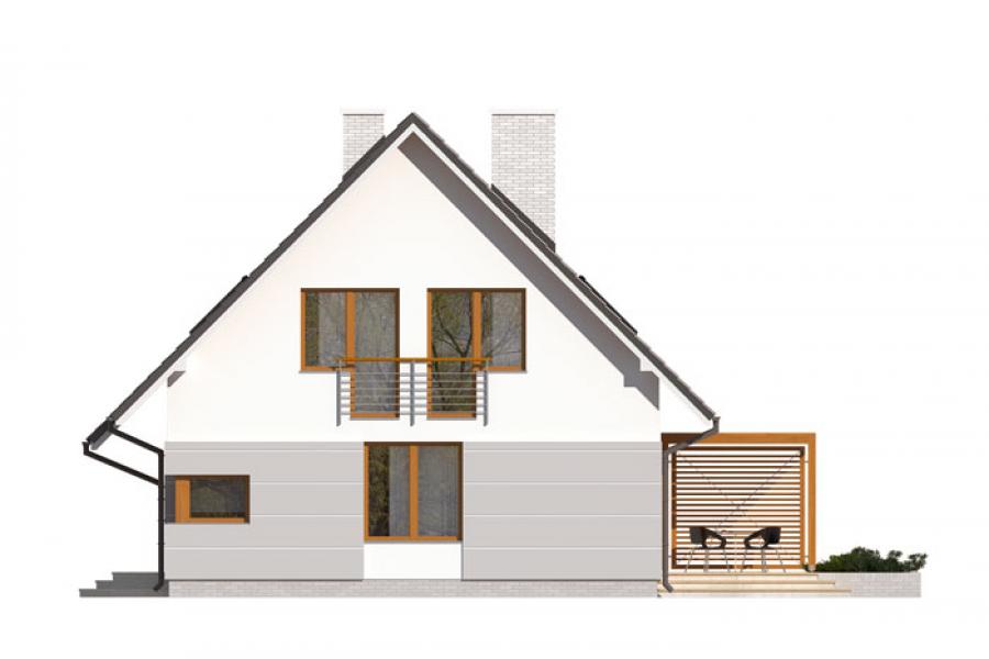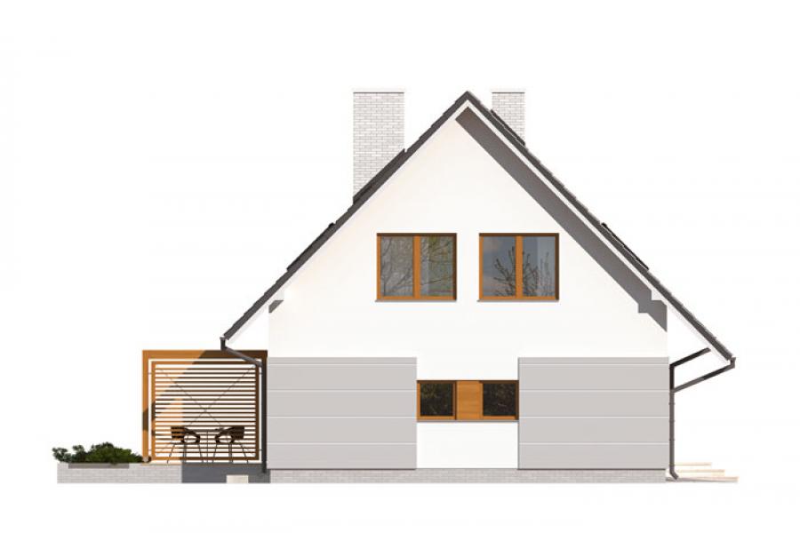 Wygodny dom jednorodzinny, parterowy, z poddaszem użytkowym, niepodpiwniczony. Posiada prostą bryłę o tradycyjnym kształcie i nowoczesnym charakterze elewacji. Zaprojektowany z troską o efektywnym wykorzystaniu powierzchni. Garderobę, dostępną z korytarza, można zaadaptować na pralnię. Kotłownia pozwala na zastosowanie kotła na dowolny rodzaj paliwa