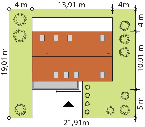 | Wysokość kalenicyMaksymalna wysokość budynku mierzona od poziomu terenu przy wejściu do najwyżej położonego punktu dachu. | 7.92 m |