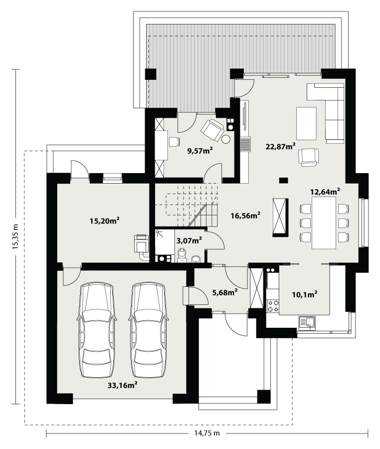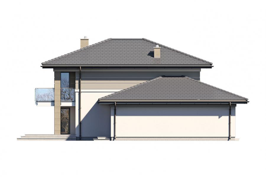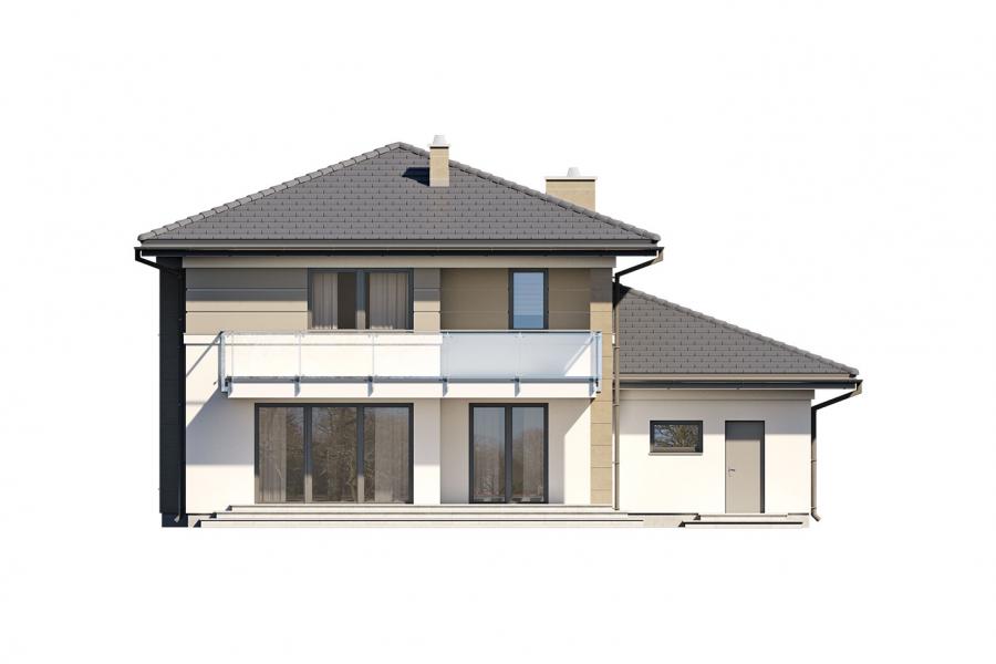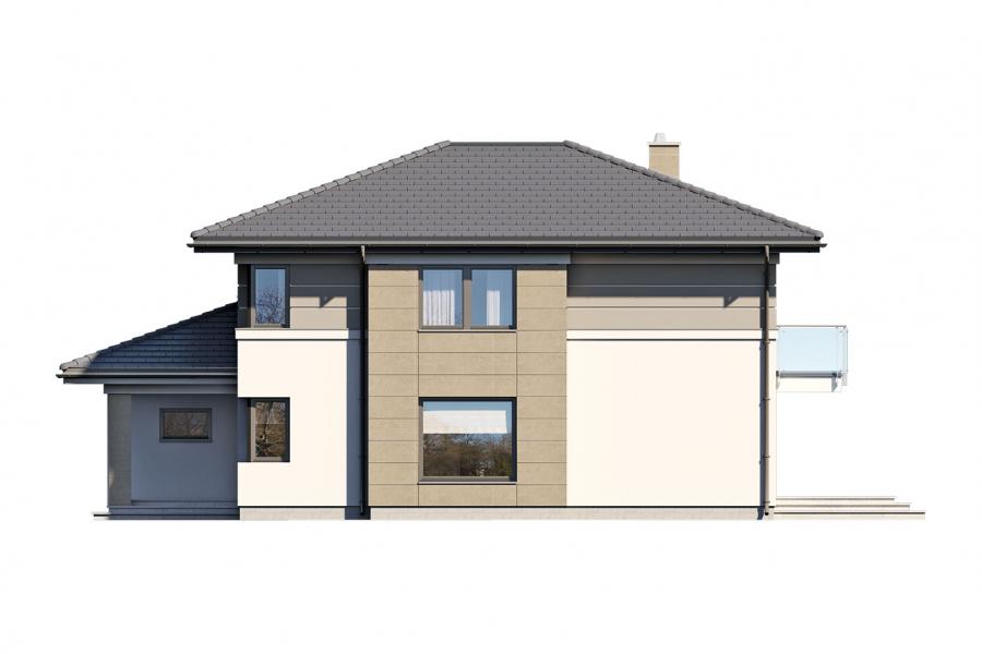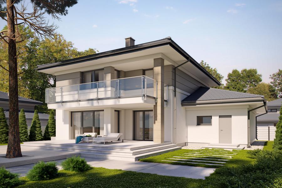 Korso 2, to projekt reprezentacyjnego domu piętrowego przeznaczonego dla 4-osobowej rodziny. Jest to typowo miejska rezydencja o nowoczesnym wyglądzie i optymalnej powierzchni użytkowej. Posiada bogaty program funkcjonalny, rozłożony na dwóch pełnych kondygnacyjnych, który zapewni komfort nawet dla wymagających inwestorów. Parter zaprojektowano jako otwartą przestrzeń dzienną, złożoną z połączonego salonu, jadalni i kuchni. Przewidziano tutaj także dodatkowy pokój, który można wykorzystać jako gabinet lub dodatkową sypialnię. Na parterze znajduje się również duża kotłownia, na każdy rodzaj paliwa oraz dwustanowiskowy garaż.Dzięki osłonięciu częściowo zadaszonych tarasów, uzyskano na tarasie prywatną strefę wypoczynku. Na piętrze zaprojektowano 3 sypialnie, łazienkę i pralnię. Główna sypialnia ma zapewnioną własną garderobę oraz łazienkę. Taką dodatkową przestrzeń można według potrzeb przerobić np. na kącik do pracy. Korso 2 zachwyca wysmakowaną, ponadczasową, klasyczną bryłą ujętą we współczesny elegancki wizerunek. Rezydencja ta stanowi doskonałą propozycję dla inwestorów poszukujących komfortowego domu w estetycznym wydaniu.