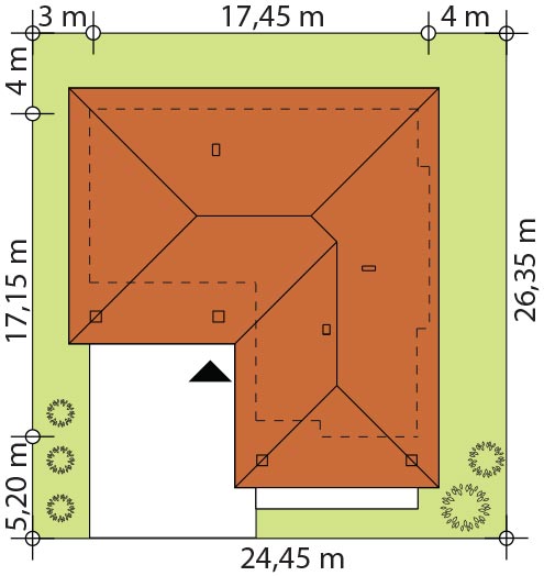 | Wysokość kalenicyMaksymalna wysokość budynku mierzona od poziomu terenu przy wejściu do najwyżej położonego punktu dachu. | 6.61 m |