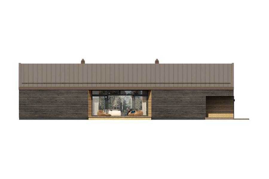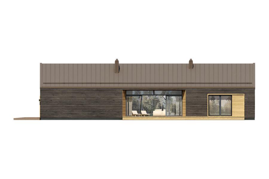 Leon 2 to propozycja dla osób, które szukają architektury bezkompromisowej. Ten parterowy dom w stylu nowoczesnej stodoły przyciąga wzrok unikalnym rozwiązaniem – całkowicie przeszkloną częścią dzienną, która „rozbija” klasyczną bryłę na rzucie prostokąta. Kontrast między ciemną szalówką elewacji a świetlistym, otwartym wnętrzem sprawia, że budynek staje się integralną częścią otaczającego go ogrodu.