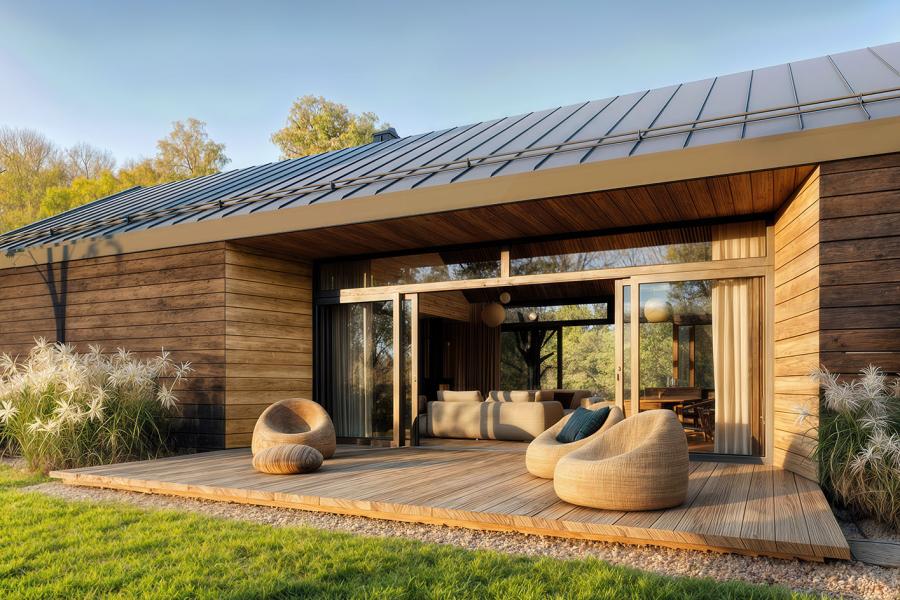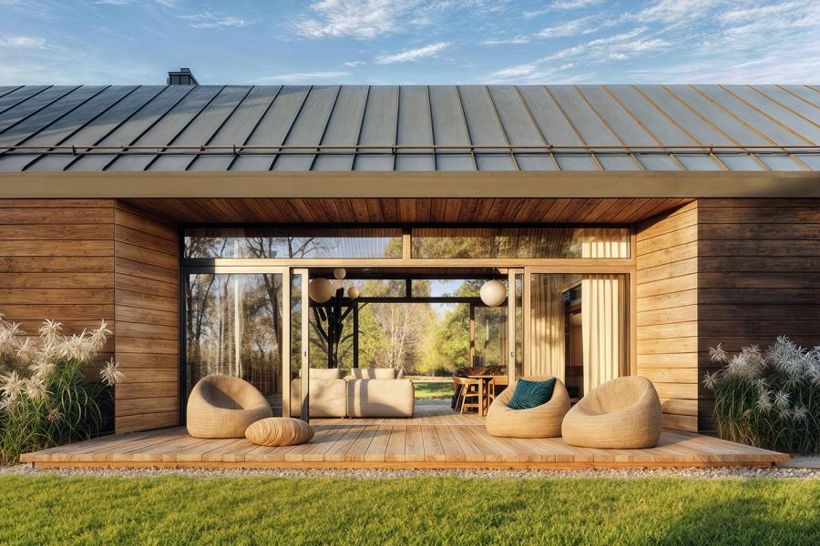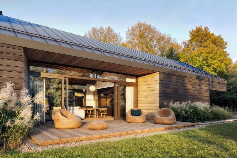 - Spektakularne przeszklenia: Całkowicie otwarta na ogród część dzienna dająca efekt „przenikania” natury do środka.