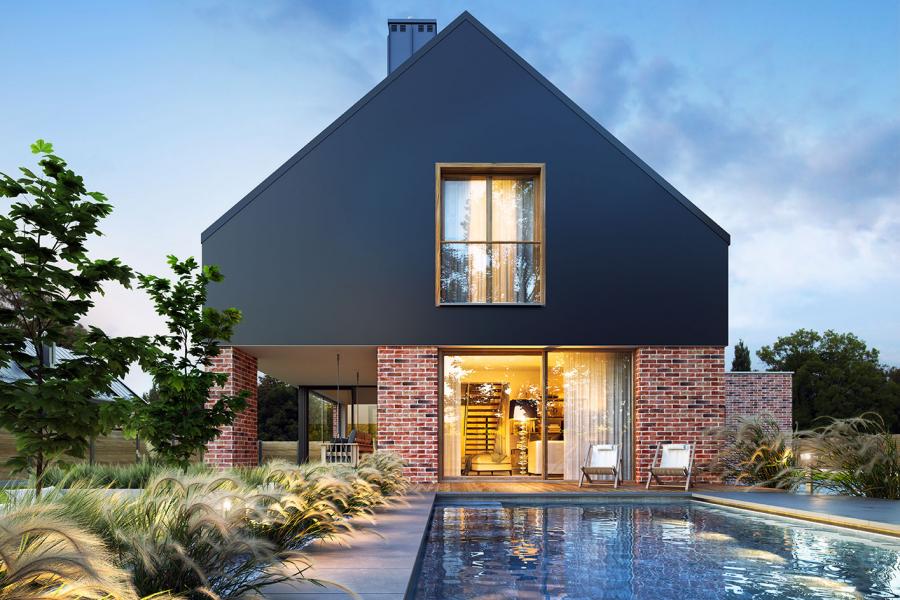 Elewacje: tynk, płytki elewacyjne, szalówka