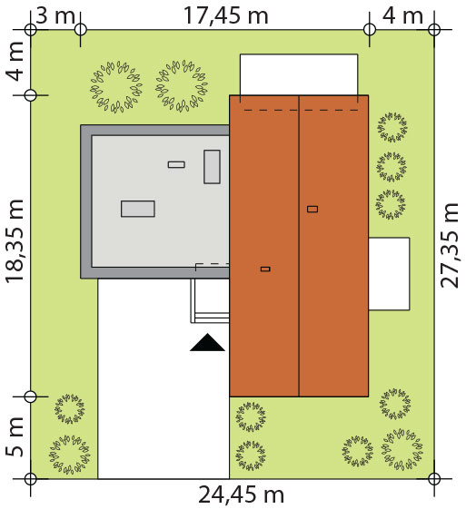 | Minimalna szerokość działki | 24.45 m |
