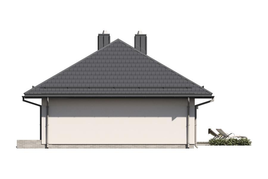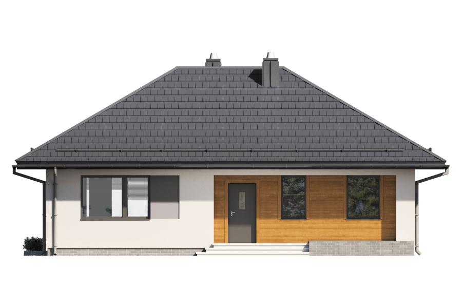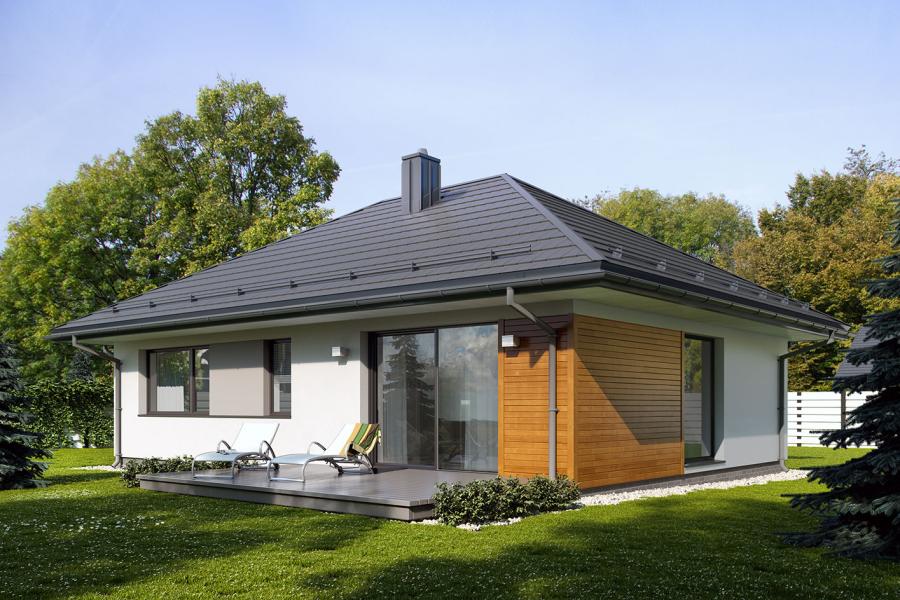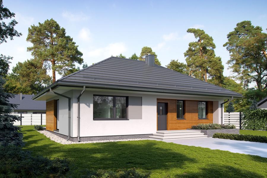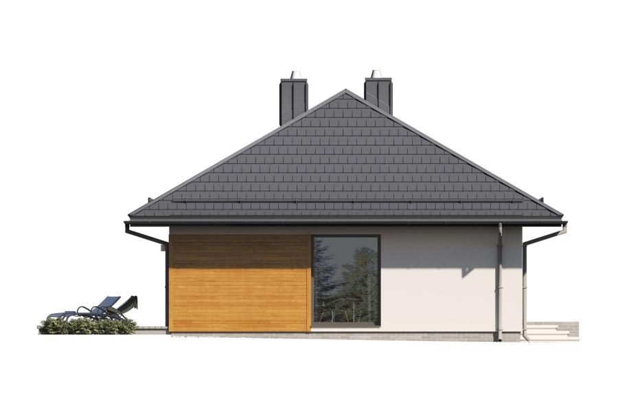 Lori drewniany to projekt domu parterowego jednorodzinnego zapewniającego komfort 3-4 osobowej rodzinie. Jest to dom zaprojektowany z wyraźnym podziałem na strefy. W przestronnej części dziennej znajduje się duży salon z miejscem na kominek, jadalna i kuchnia ze spiżarnią. W salonie zaprojektowane zostało duże przeszklenie, umożliwiające wyjście na taras. W strefie dziennej znajduje się też wiatrołap, z którego mamy dostęp do sporych rozmiarów kotłowni. Pomieści ona kocioł gazowy lub kocioł na paliwo stałe. Pozostała część parteru to strefa nocna, która składa się z 2 sypialni i przestronnej łazienki. W łazience znajdzie się miejsce na dwie umywalki, wannę, toaletę, bidet i pralkę. Powierzchnia użytkowa domu to 84,3 m2. Lori drewniany to idealny projekt parterowego domu dla osób ceniących sobie minimalizm i funkcjonalność.
