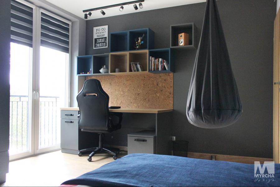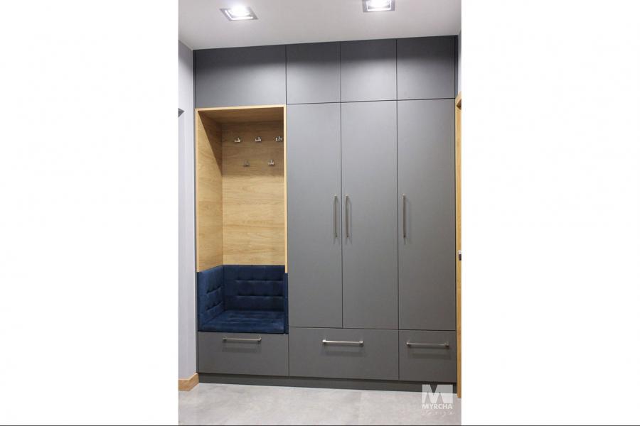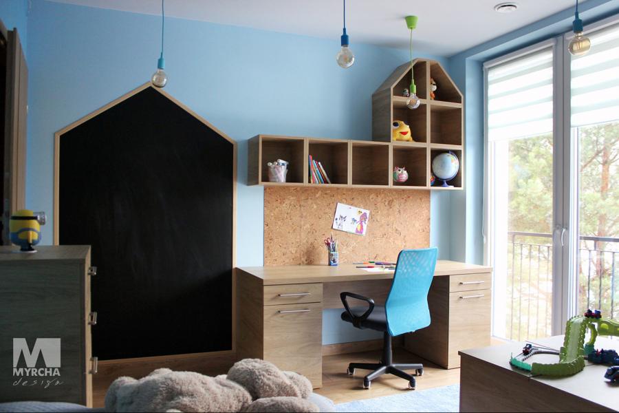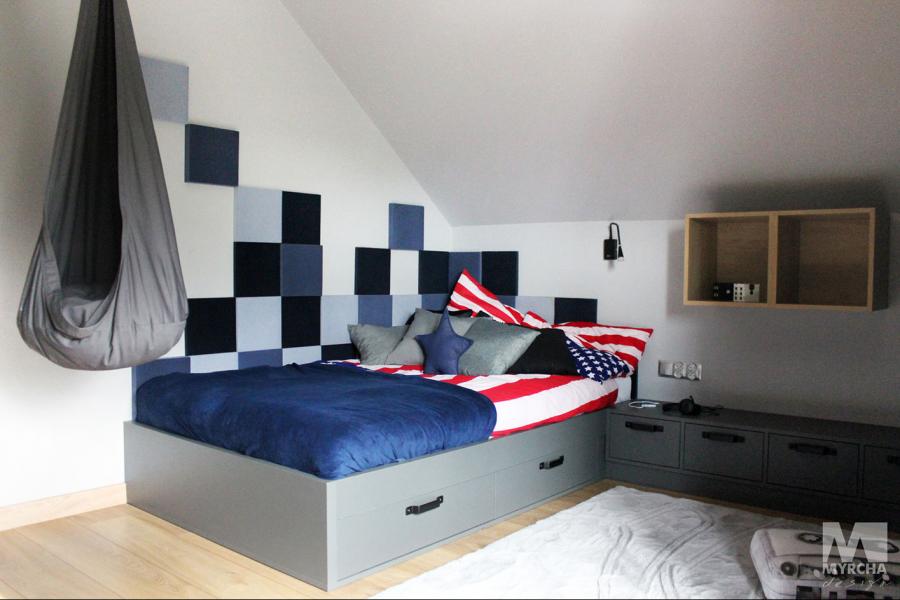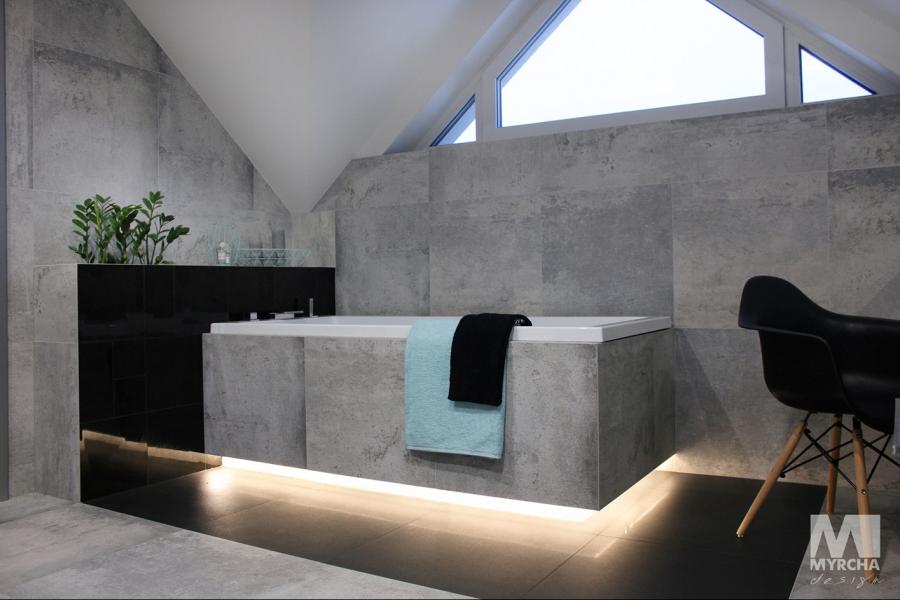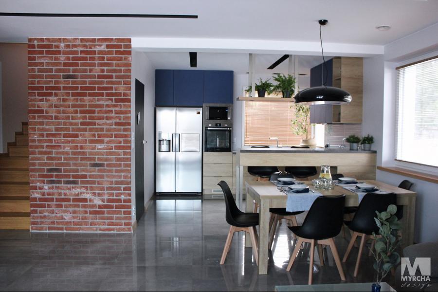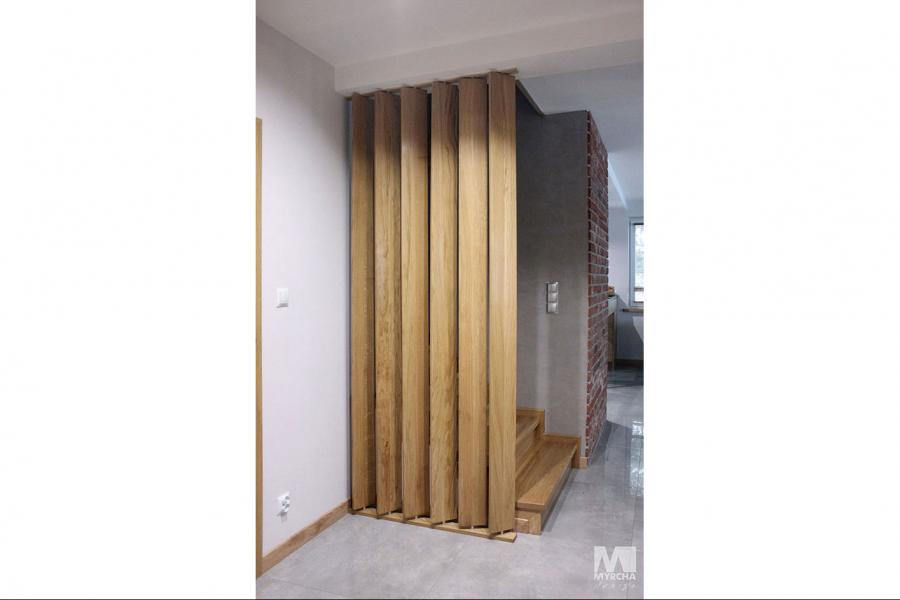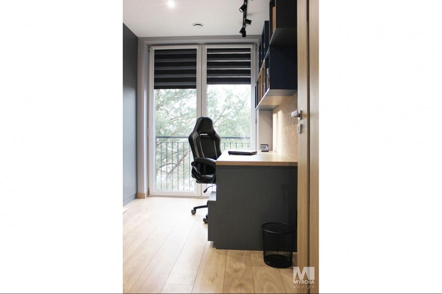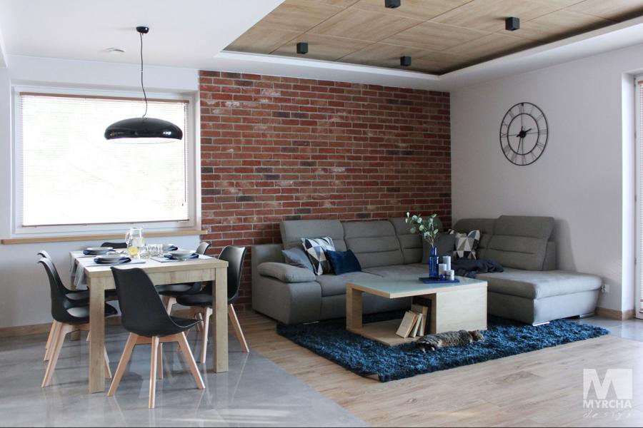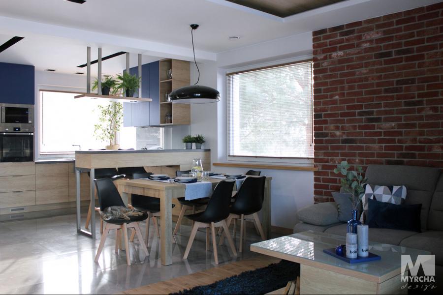 Dom jednorodzinny parterowy z użytkowym poddaszem, o klarownym podziale na strefy funkcjonalne. Na parterze po lewej stronie od wejścia znajduje się strefa dzienna: kuchnia, ze spiżarnią pod schodami, jadalnia oraz pokój dzienny z wyjściem na taras. Po prawej stronie od wejścia wydzielono strefę garażową na dwa stanowiska oraz obszerną kotłownię z wyjściem na zewnątrz. W strefie środkowej zaprojektowano dodatkową sypialnię oraz łazienkę ogólnodostępną. Poddasze użytkowe stanowi strefę prywatną obejmującą główną sypialnię z wyjściem na taras, dwie garderoby, przestronną łazienkę, dwie sypialnie dziecięce oraz przestrzeń rekreacyjną otwartą na klatkę schodową.