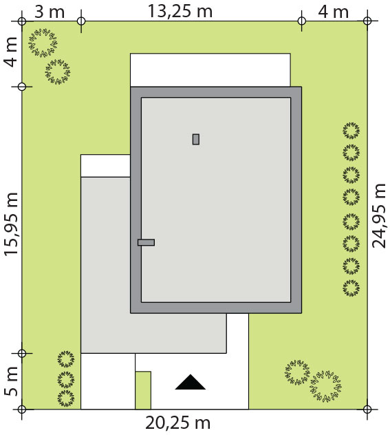 | Wysokość kalenicyMaksymalna wysokość budynku mierzona od poziomu terenu przy wejściu do najwyżej położonego punktu dachu. | 7.07 m |