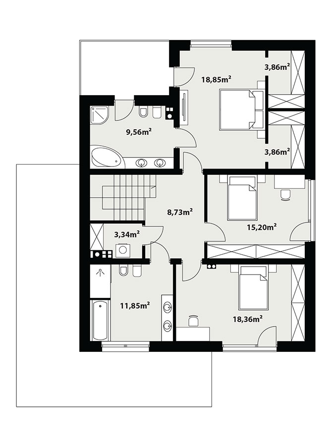| Powierzchnia użytkowaDla domów parterowych: Suma powierzchni użytkowych wszystkich pomieszczeń bez garażu. Dla domów z poddaszem (dach spadzisty): Suma powierzchni użytkowych wszystkich pomieszczeń bez garażu i strychu. Na poddaszu, pod skosami dachu powierzchnię użytkową liczono wg zasady: - powyżej 2,2m wysokości pomieszczenia powierzchnia liczona w 100%, - pomiędzy 1,4m a 2,2m w 50%, - poniżej 1,4m powierzchnia nie jest brana pod uwagę. | 187.47 m² |
