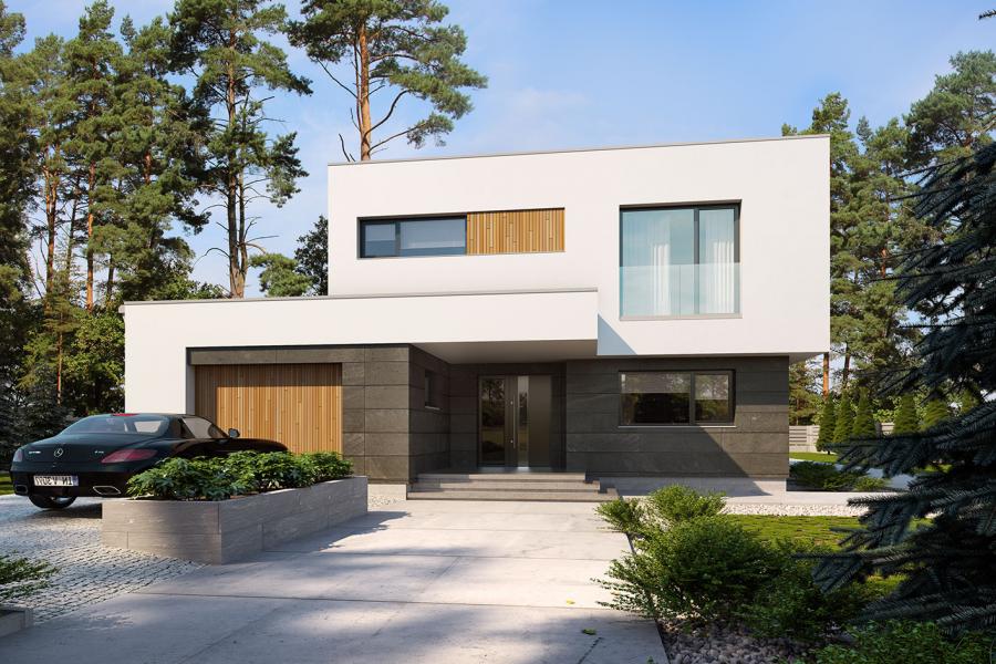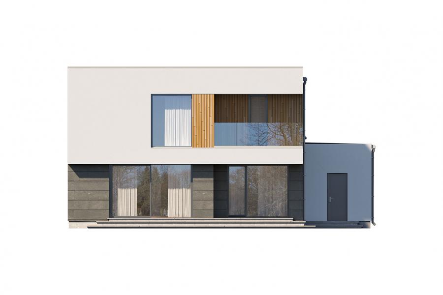 Mateo to interesująca propozycja domu skierowana do inwestorów ceniących prostotę i minimalizm w nowoczesnym wydaniu. To przykład eleganckiej wielkomiejskiej willi przeznaczonej dla 4 -osobowej rodziny. Bryłę tego piętrowego domu, przykryto płaskim dachem, na elewacjach na piętrze pojawia się biały tynk, którego surowość „ociepla” drewniana szalówka, natomiast parter został "ubrany" w zimny ciemny kamień. Zastosowane materiały i podziały elewacji, a także kontrast brył parteru i piętra świetnie ze sobą współgrają nadając budynkowi elegancki charakter i klimat współczesnych willi. Elementami determinującymi bryłę są przeszklenia w dziennej części budynku. Tworzą one szerokie otwarcie na otaczającą zieleń oraz rozległy, przykryty częściowo taras. W tej eleganckiej, nowoczesnej formie budynku ujęty został optymalny program użytkowy. W części dziennej pojawił się przestronny salon z otwartą jadalnią oraz kuchnia, a także gabinet, który można przerobić na dodatkową sypialnię. W części nocnej znalazły się 3 sypialnie z łazienką oraz pralnią. Główna sypialnia posiada dodatkowo 2 garderoby i odrębną łazienkę. W części gospodarczej przewidziano jednostanowiskowy garaż oraz dużą kotłownię. Mateo zachwyca ciekawą, ale zarazem prostą bryłą. Rezydencja ta stanowi doskonałą propozycję dla inwestorów poszukujących komfortowego domu w nowoczesnym, estetycznym i eleganckim wydaniu.