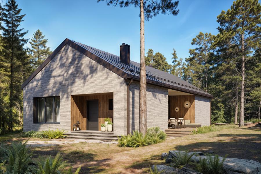Projekt domu Mati to propozycja dla inwestorów, którzy szukają złotego środka między surowym designem nowoczesnej stodoły a przytulnością rodzinnego domu. To parterowy budynek o prostej, zwartej bryle przykrytej dwuspadowym dachem, który dzięki zastosowaniu technologii murowanej (pustak ceramiczny + styropian), gwarantuje trwałość i doskonałe parametry cieplne na lata.