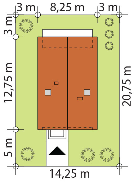 | Minimalna szerokość działki | 14.25 m |