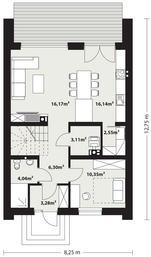 Autor projektu zaprojektował dom Miko tak aby maksymalnie obniżyć koszt budowy zachowując wygodę i funkcjonalność wnętrza.
