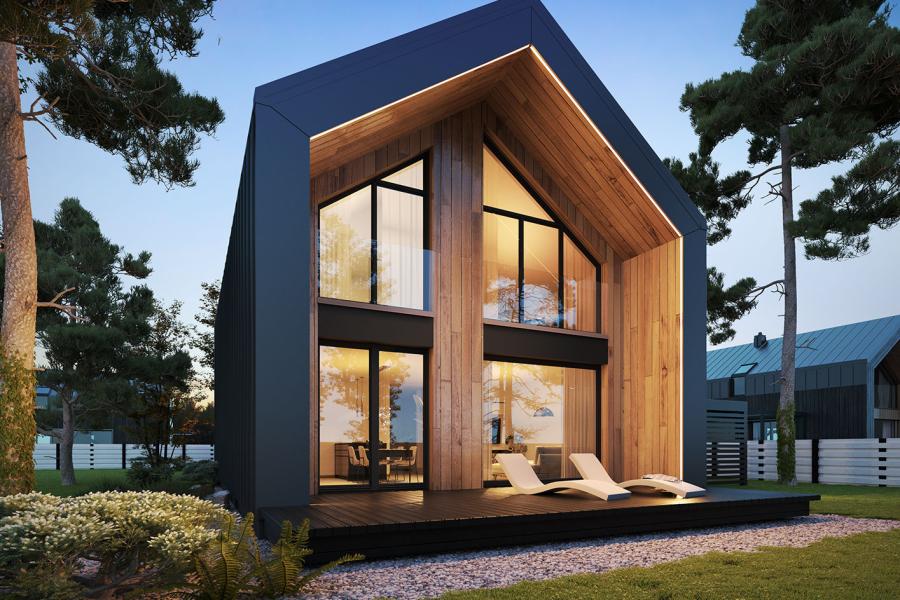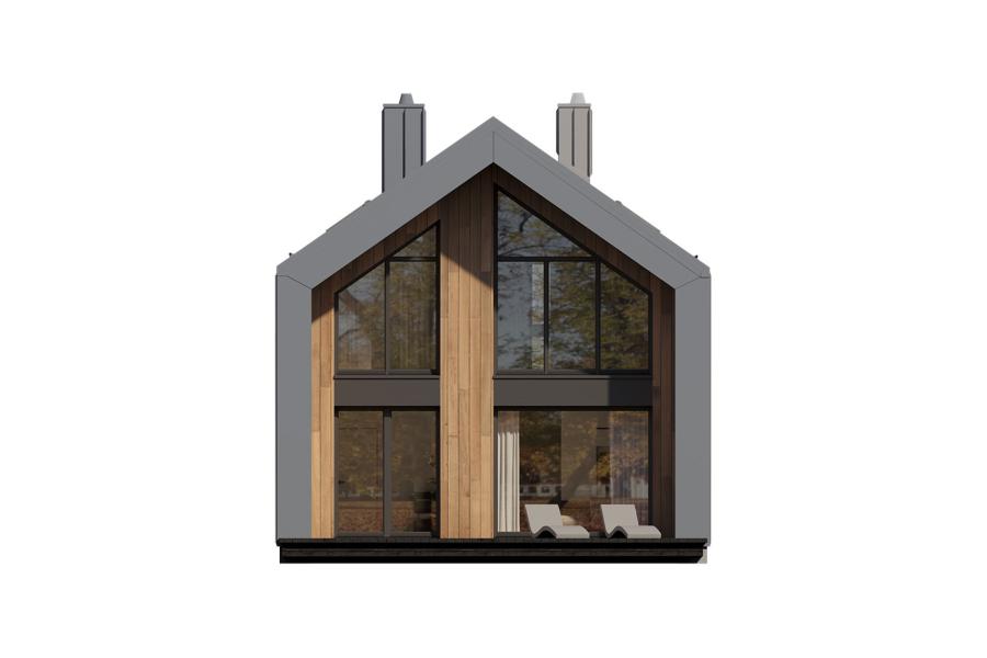 Zaplanowana w ciekawy sposób bryła budynku sprawia że, Miko przyciąga uwagę osób lubiących nowoczesną architekturę. Dom został zaprojektowany na planie prostokąta, a powierzchnia zabudowy to 93 m2. Projekt wyróżnia się nietuzinkowymi elewacjami. Elewacje wentylowane na ruszcie są pokryte nowoczesnymi materiałami – grafitową blachą, która pokrywa również dach oraz szalówką lub płytą HPL w naturalnym odcieniu drewna. Całość dopełniają duże przeszklenia w grafitowych ramach. Wejście do domu osłania nadwieszony daszek. Od strony ogrodu znajduje się spory, po części zadaszony taras. Dom Miko posiada dwuspadowy dach o kącie nachylenia 35 stopni.