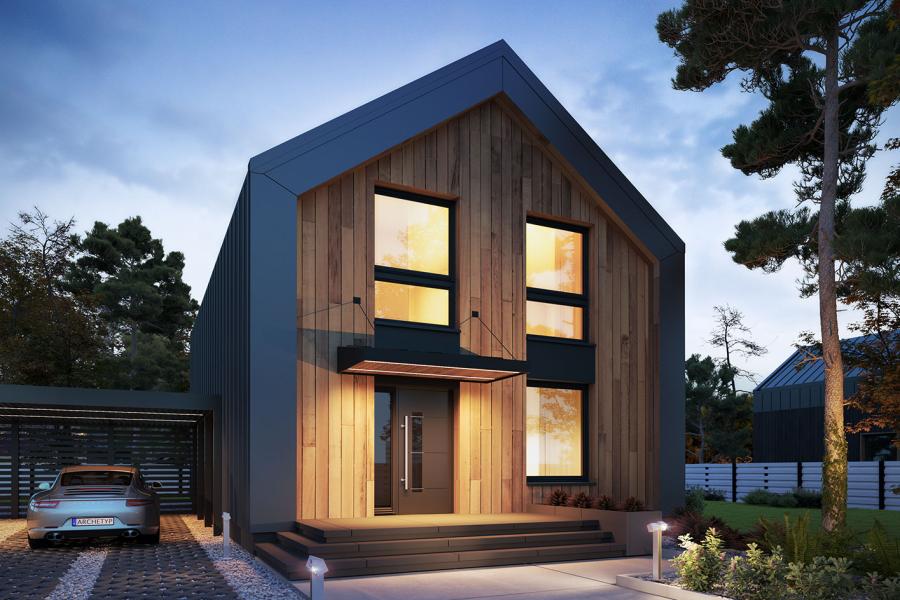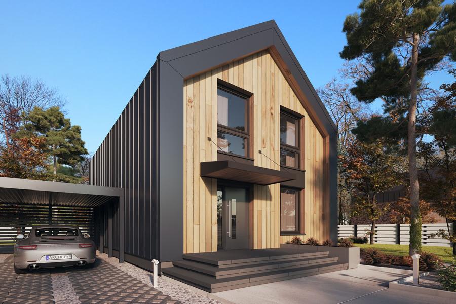 Dom Miko to nowoczesny dom jednorodzinny z poddaszem użytkowym. Projekt doskonale nadaje się na małe działki w zwartej zabudowie ponieważ, minimalna powierzchnia działki to tylko 295,69 m2, co daje szerokość działki – 14,25 m a długość działki – 20,75m. Jeżeli jednak gabaryty działki nam na to pozwalają można obok domu Miko dobudować wiatę na samochód osobowy, tak jak jest to przedstawione na wizualizacjach. Oczywiście przed kupnem projektu domu Miko należy sprawdzić czy projekt jest zgodny z miejscowym planem zagospodarowania przestrzennego lub z decyzją zabudowy na daną działkę. Przed kupnem projektu zaleca się sprawdzić nieprzekraczalne linie zabudowy na miejscowym planie lub decyzji, ponieważ mogą one wpłynąć na minimalne wymiary działki.