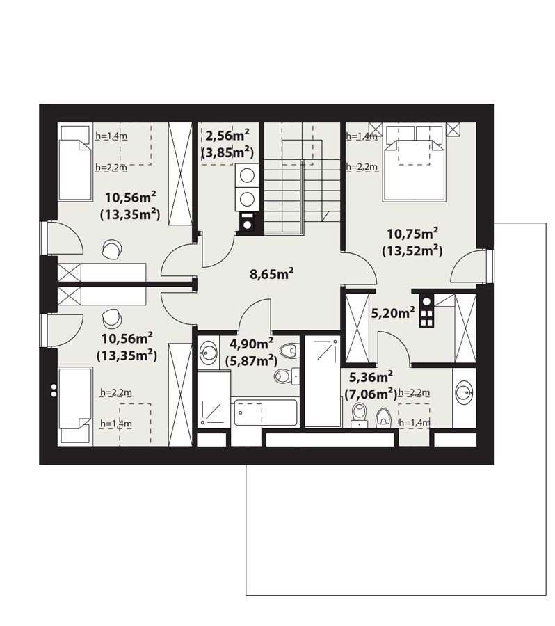 | Powierzchnia użytkowaDla domów parterowych: Suma powierzchni użytkowych wszystkich pomieszczeń bez garażu. Dla domów z poddaszem (dach spadzisty): Suma powierzchni użytkowych wszystkich pomieszczeń bez garażu i strychu. Na poddaszu, pod skosami dachu powierzchnię użytkową liczono wg zasady: - powyżej 2,2m wysokości pomieszczenia powierzchnia liczona w 100%, - pomiędzy 1,4m a 2,2m w 50%, - poniżej 1,4m powierzchnia nie jest brana pod uwagę. | 126.98 m² |