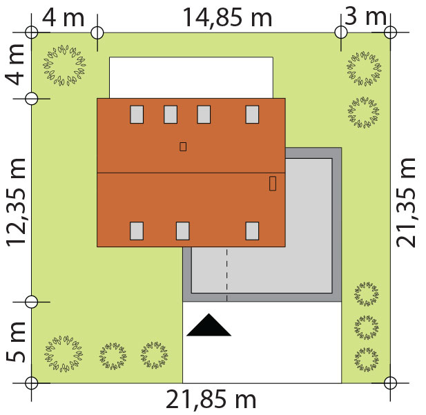 | Wysokość kalenicyMaksymalna wysokość budynku mierzona od poziomu terenu przy wejściu do najwyżej położonego punktu dachu. | 8.65 m |