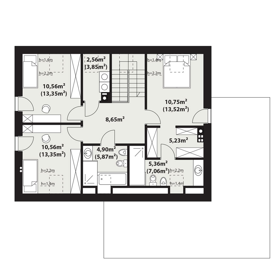 | Powierzchnia użytkowaDla domów parterowych: Suma powierzchni użytkowych wszystkich pomieszczeń bez garażu. Dla domów z poddaszem (dach spadzisty): Suma powierzchni użytkowych wszystkich pomieszczeń bez garażu i strychu. Na poddaszu, pod skosami dachu powierzchnię użytkową liczono wg zasady: - powyżej 2,2m wysokości pomieszczenia powierzchnia liczona w 100%, - pomiędzy 1,4m a 2,2m w 50%, - poniżej 1,4m powierzchnia nie jest brana pod uwagę. | 131.14 m² |