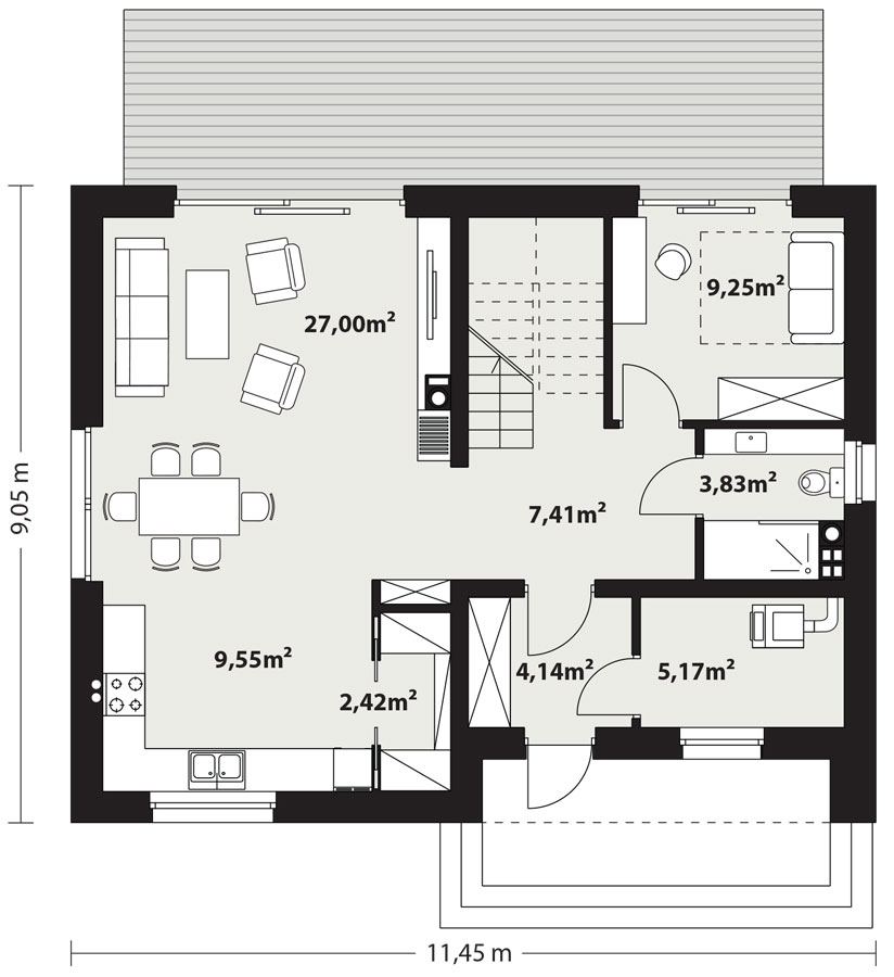 | Powierzchnia zabudowyPowierzchnia terenu, zajęta przez budynek w stanie wykończonym, bez tarasów, schodów zewnętrznych i podjazdów (PN-ISO 9836: 1997) | 103.62 m² |