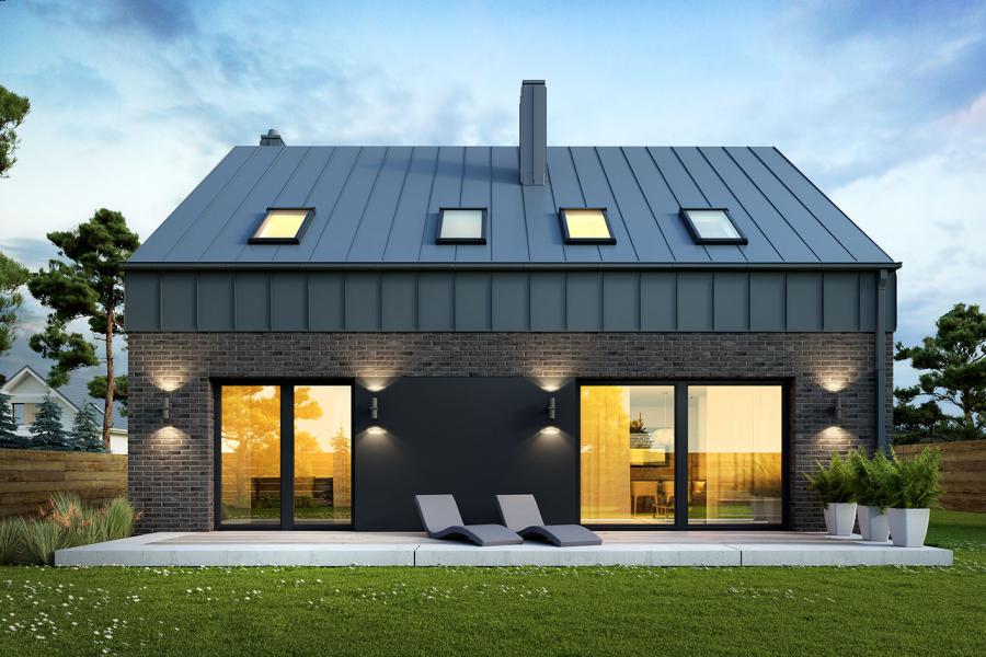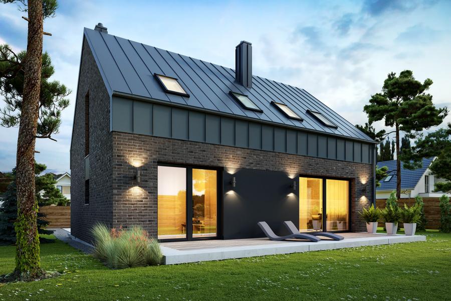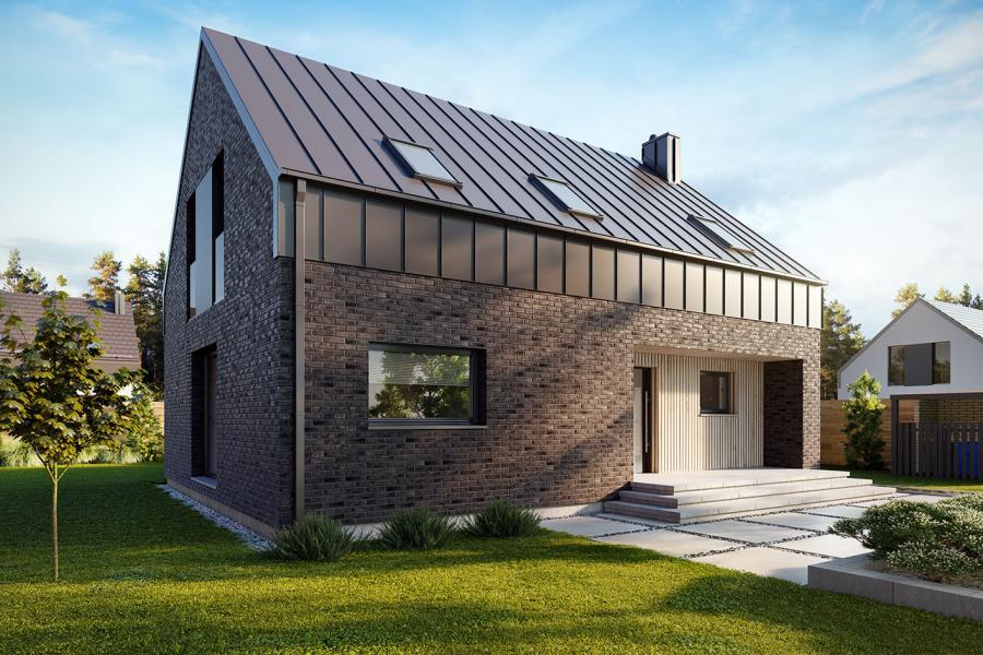 Elewacje: płytka elewacyjna, tynk, szalówka
