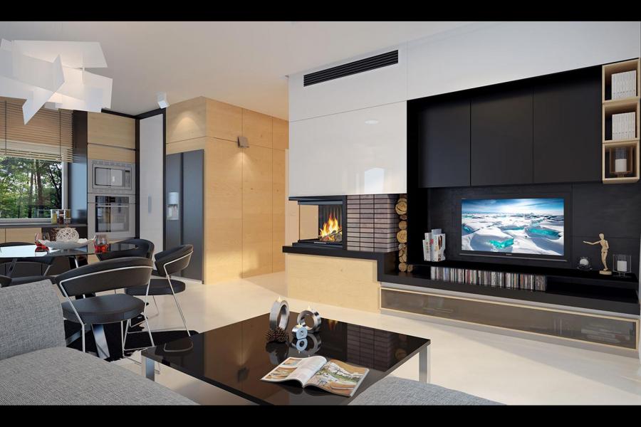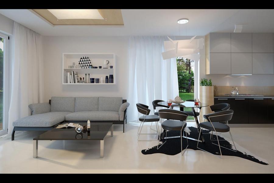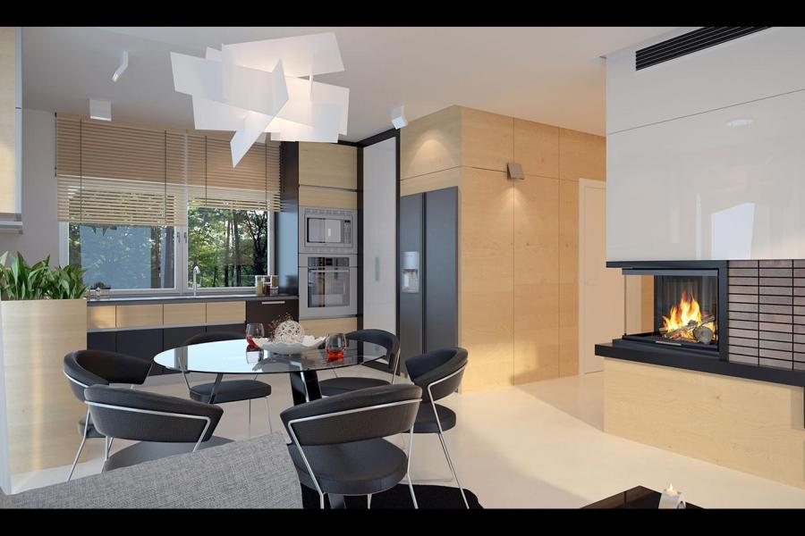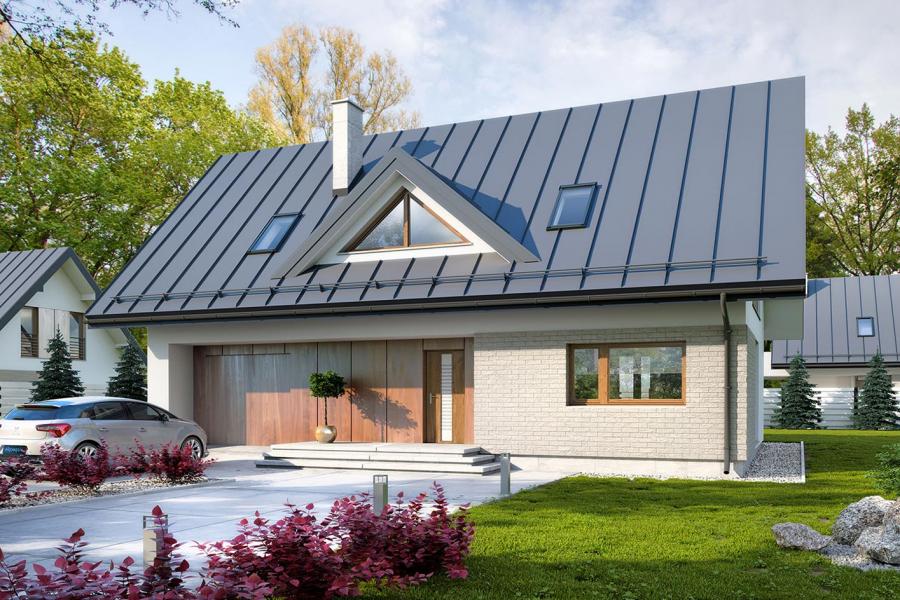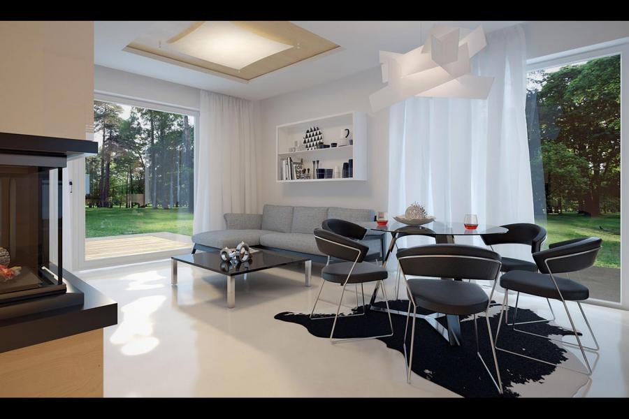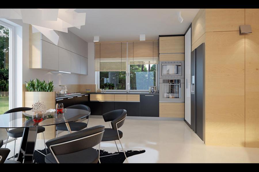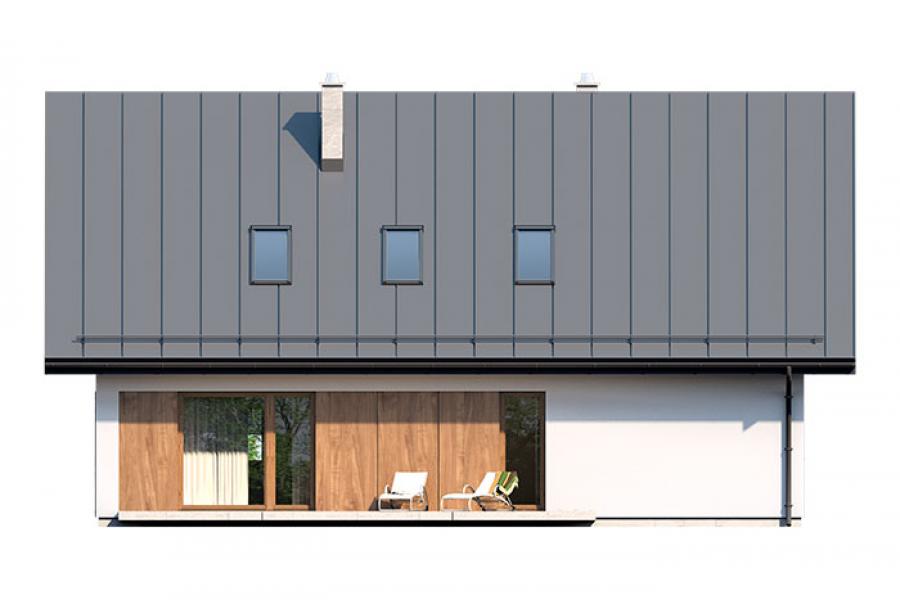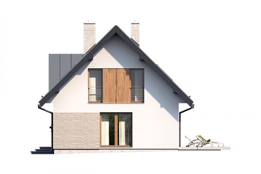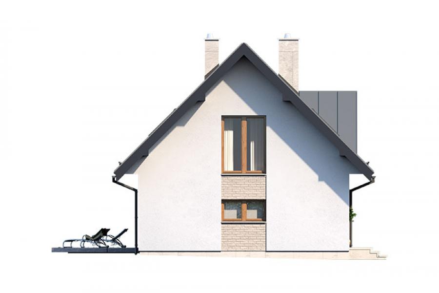 Prosty, ale zarazem interesujący dom o średnich gabarytach. Bardzo funkcjonalny układ pomieszczeń zapewnia optymalny komfort 5-osobowej rodzinie. Na parterze zaprojektowano kuchnię ze spiżarnią, salon z jadalnią, kotłownię, łazienkę oraz garaż. Atutem tego projektu jest dodatkowy pokój na parterze, który może pełnić rolę gabinetu. Na poddaszu przewidziano 4 sypialnie, w tym jedną z własną łazienką i garderobą oraz łazienkę. Elegancki styl tego budynku uzyskano poprzez połączenie klasycznej bryły domu jednorodzinnego z nowoczesnymi elewacjami i materiałami oraz z delikatnym detalem.