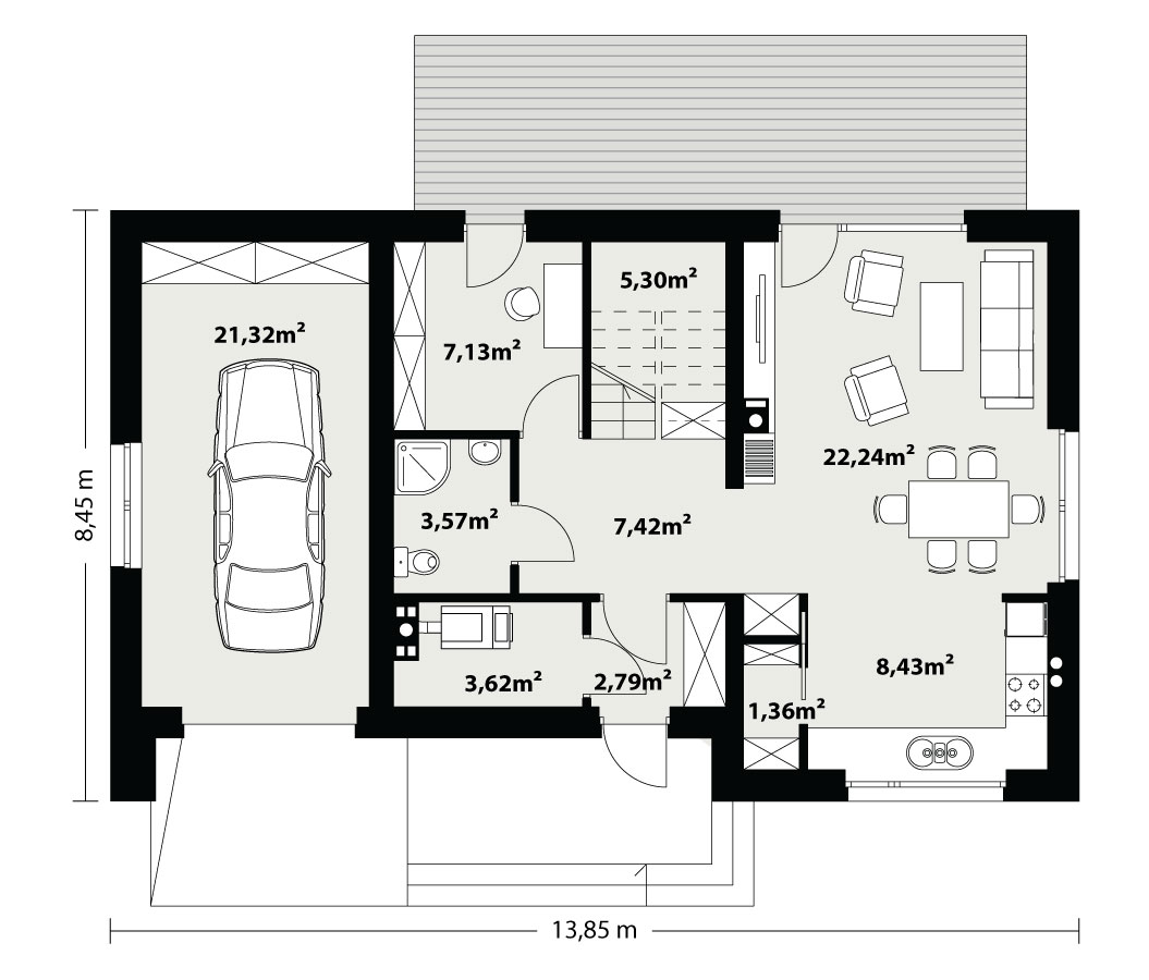 | Powierzchnia garażu | 21.32 m² |
