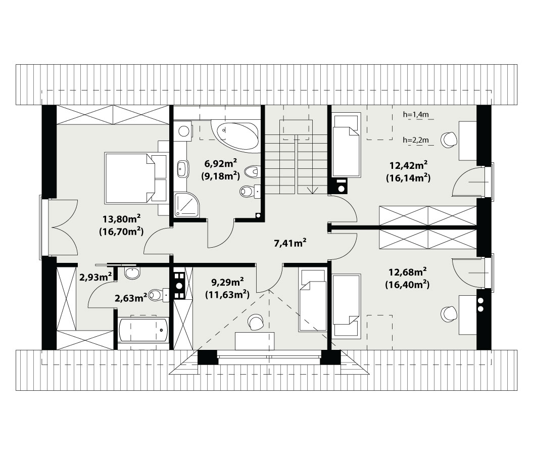 | Powierzchnia użytkowaDla domów parterowych: Suma powierzchni użytkowych wszystkich pomieszczeń bez garażu. Dla domów z poddaszem (dach spadzisty): Suma powierzchni użytkowych wszystkich pomieszczeń bez garażu i strychu. Na poddaszu, pod skosami dachu powierzchnię użytkową liczono wg zasady: - powyżej 2,2m wysokości pomieszczenia powierzchnia liczona w 100%, - pomiędzy 1,4m a 2,2m w 50%, - poniżej 1,4m powierzchnia nie jest brana pod uwagę. | 129.98 m² |